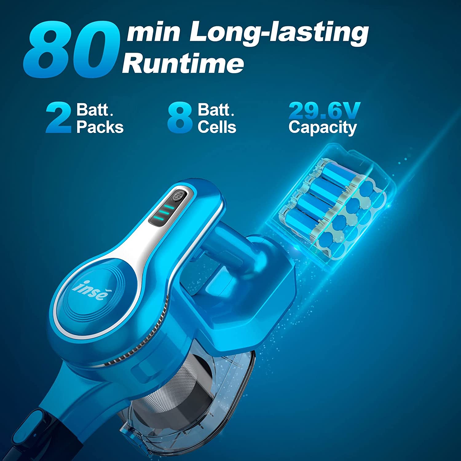 INSE S6P on kevyt ja monipuolinen varsi-imuri kotiin. Harjaton moottori ja kaksi tehotilaa tarjoavat tehokkaan imutehon eri pinnoille, ja 5-vaiheinen suodatusjärjestelmä vangitsee hienonkin pölyn. Pitkä akunkesto kahdella akulla mahdollistaa siivouksen suuremmissakin tiloissa.