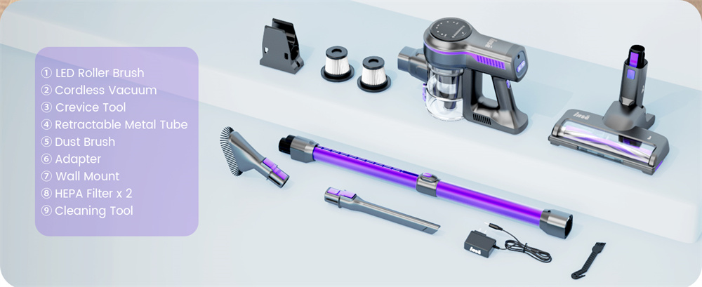 Vactidy V9 PRO johdoton sauvaimuri kevyt 250 watin harjaton moottori jopa 45 minuutin akunkesto LED-valolla