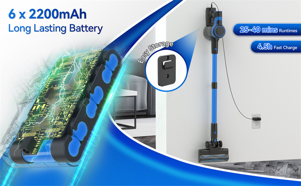Inse S600 langaton sauva-imuri 250 W:n harjaton moottori 25 kPa hepa-suodatin 1,2 l pölysäiliö kevyt