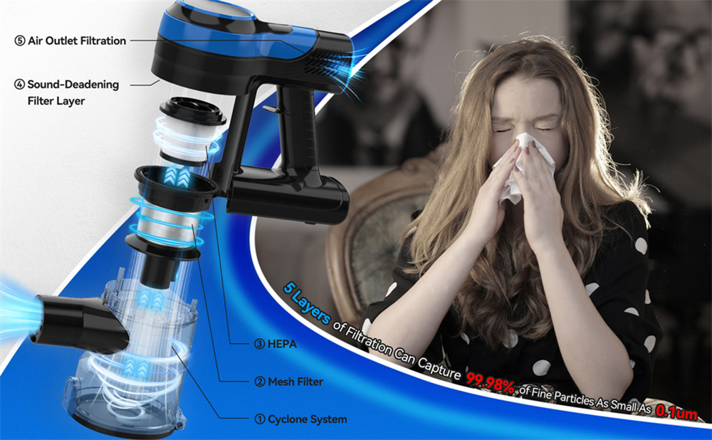 - HEPA-suodatin puhtaampaan poistoilmaan