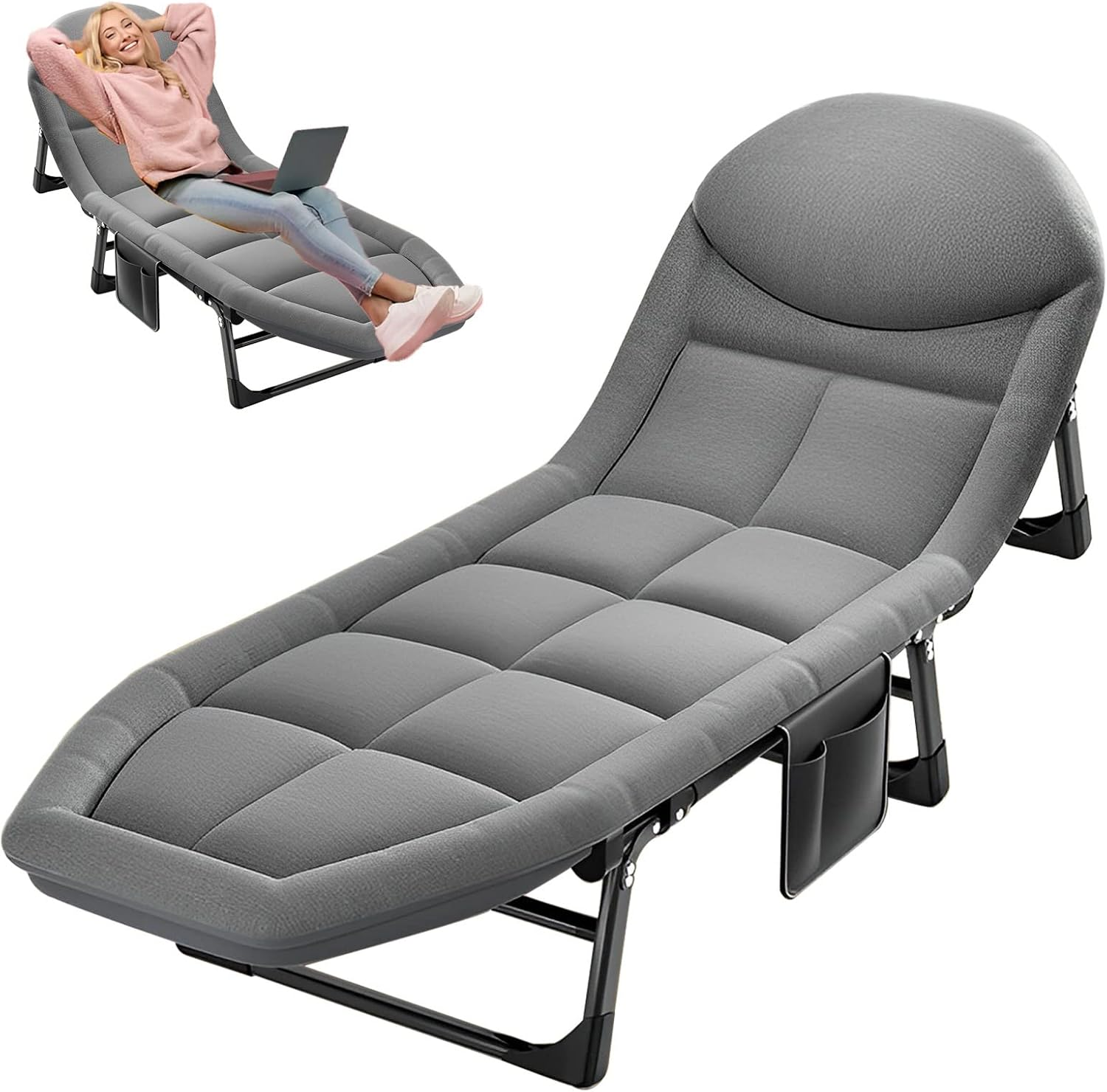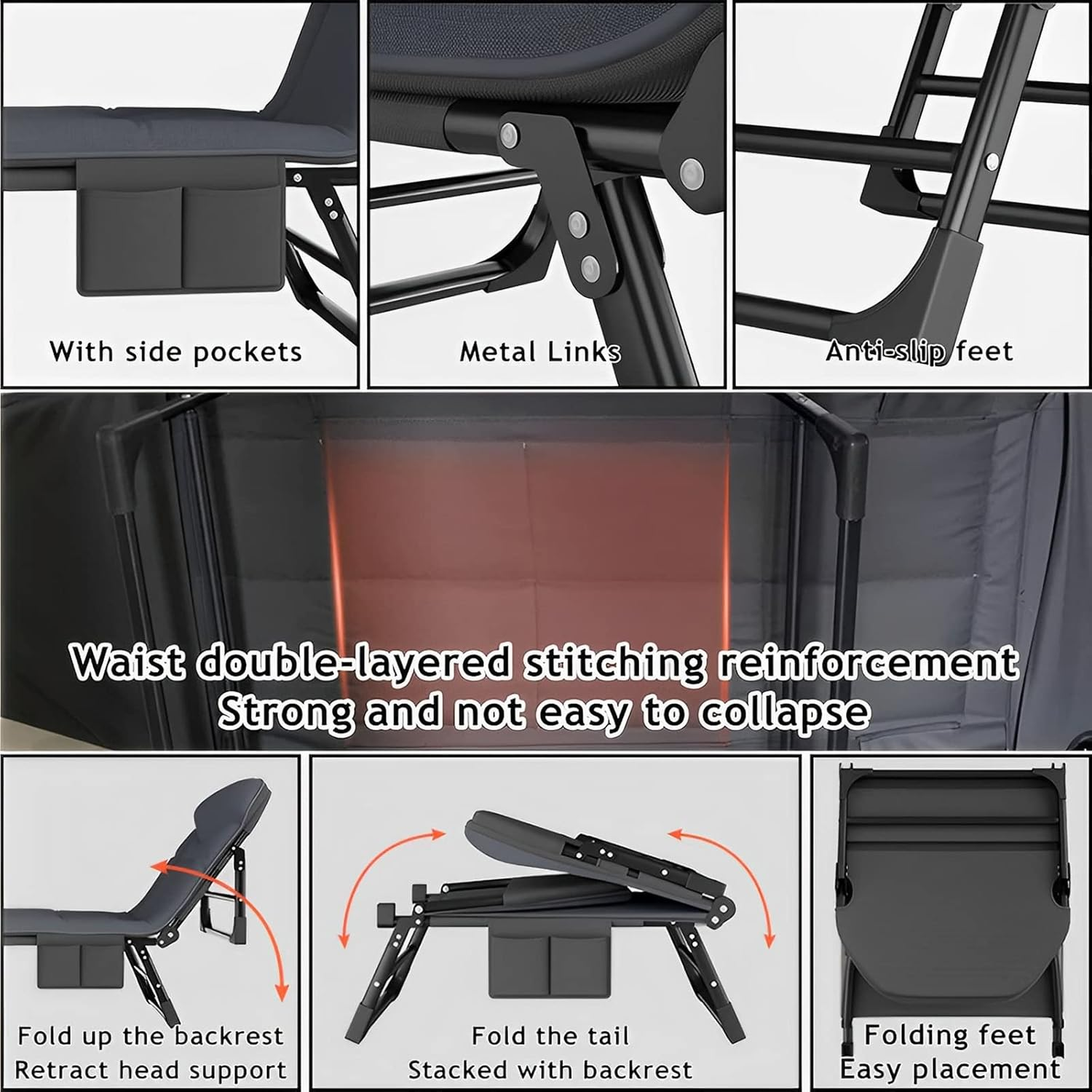 IPRee kannettava kokoontaitettava ulkokäyttöinen aurinkotuoli retkisänky patjalla tyynyllä 190x66x35cm