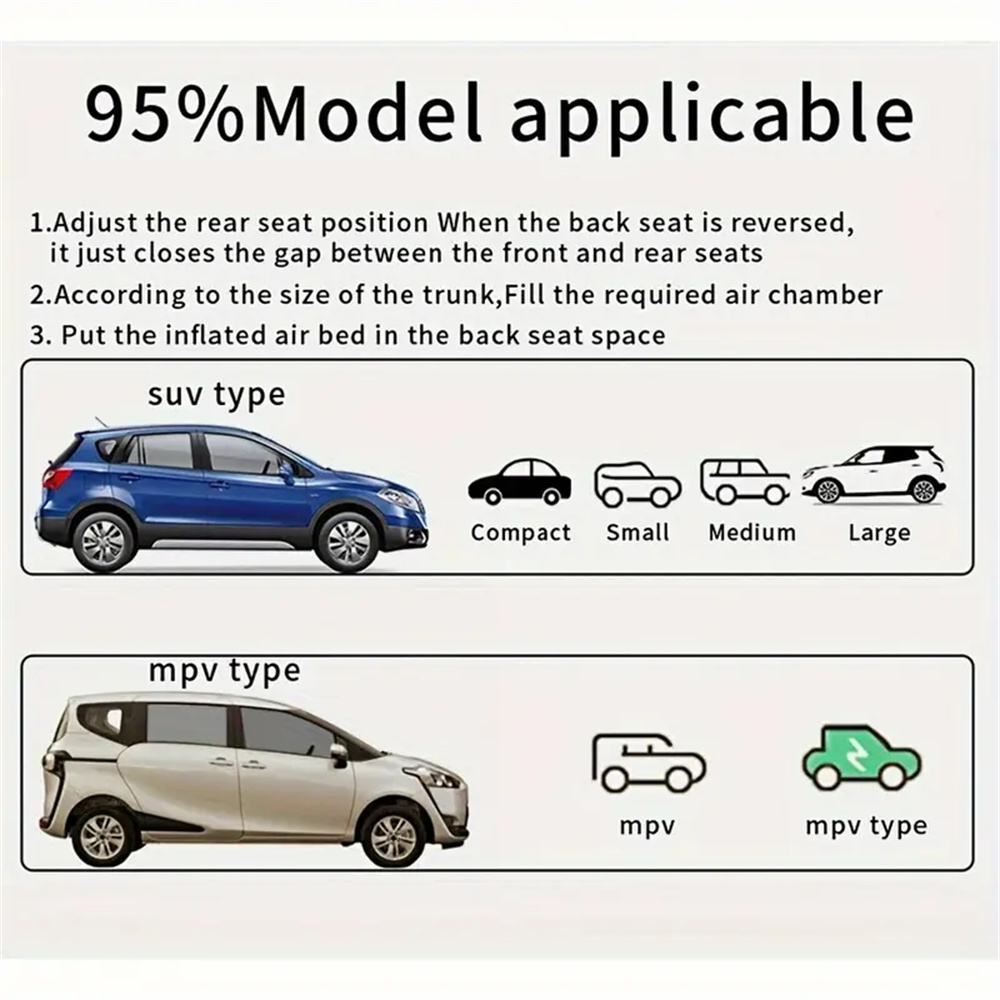 5. Tämä SUV-ilmapatja sopii 99% SUV-autoista (uusi versio: takapenkki voidaan kaataa) sekä sedan-malleihin (niiden takapenkille).