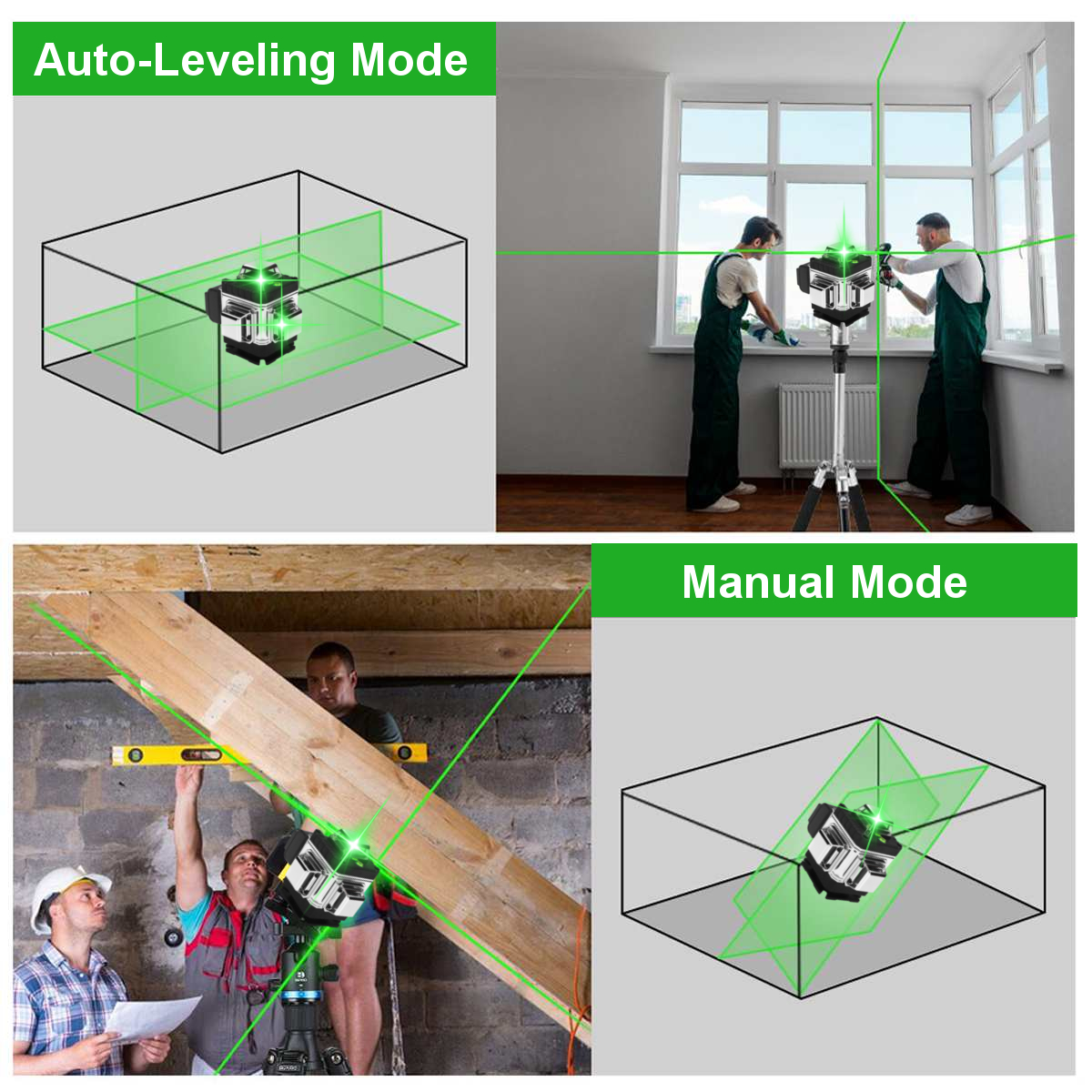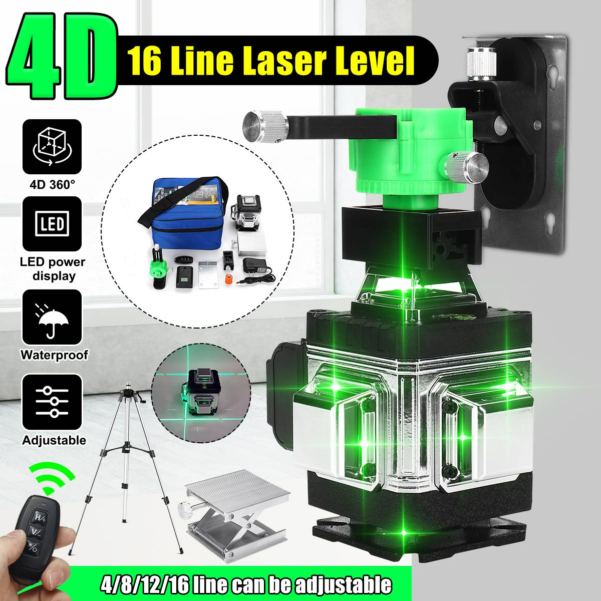Itsevaaitteleva 4D 16-viivainen 360° vihreä lasertaso mittalaite