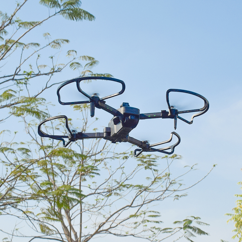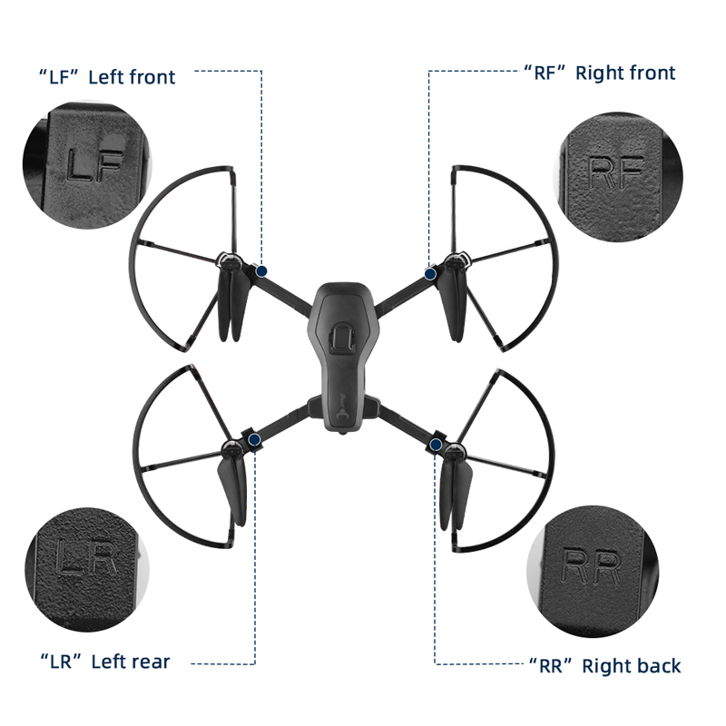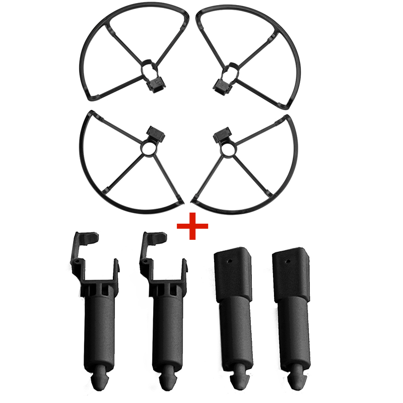 Muovinen potkurinsuojasetti ja korotetut laskutelineet suojaavat potkureita ja nostavat quadkopteria helpottaen pehmeitä laskeutumisia. Pakkaus sisältää neljä suojusta ja neljä laskutelinettä.