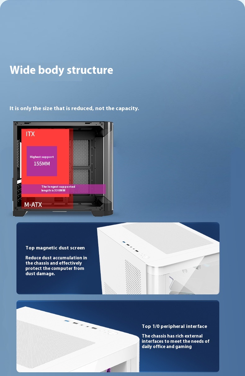 5. Laaja yhteensopivuus: CPU-jäähdytin jopa 155 mm ja näytönohjain jopa 330 mm.