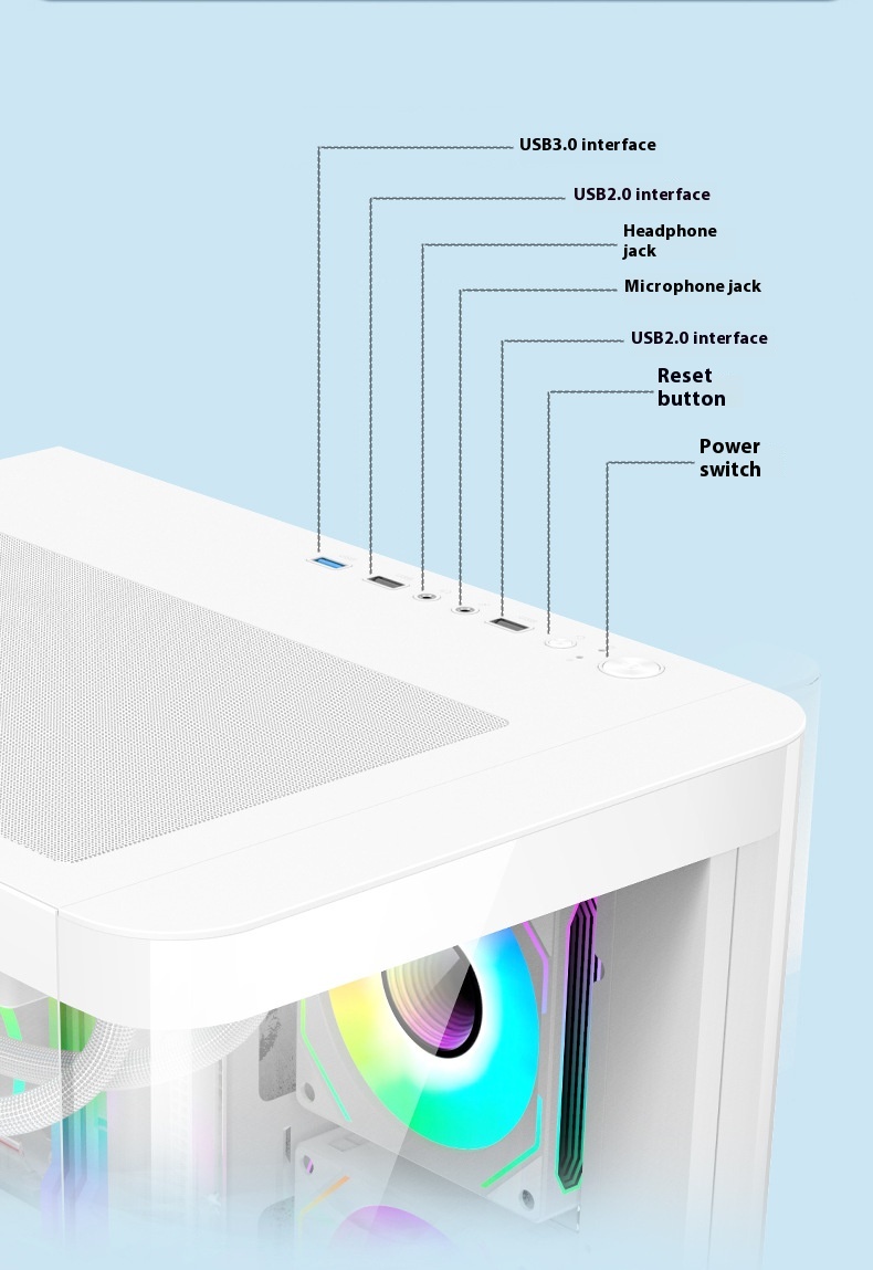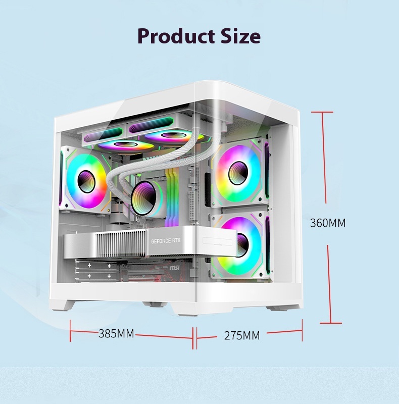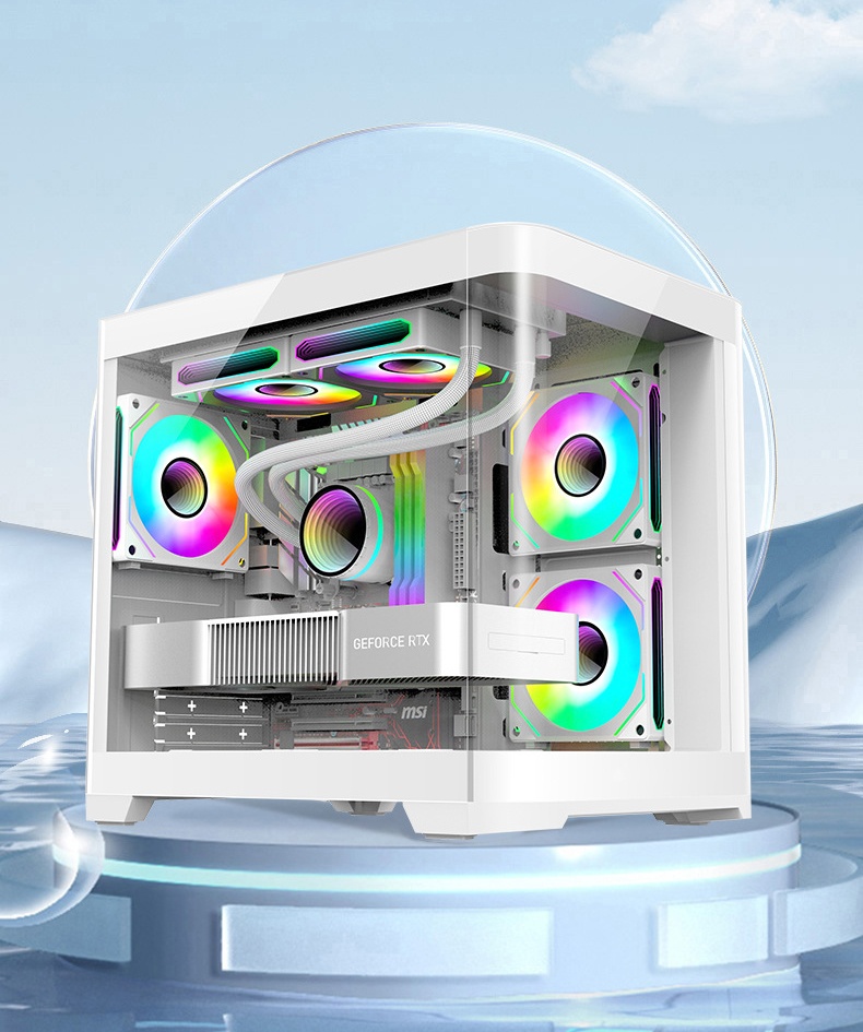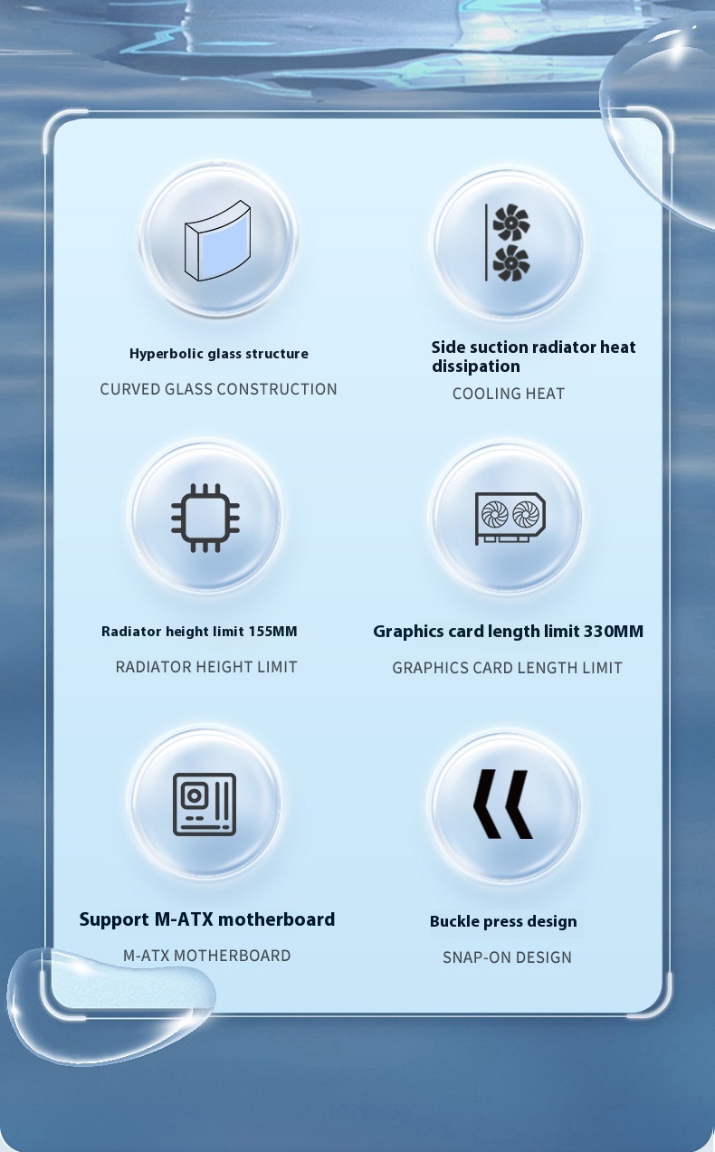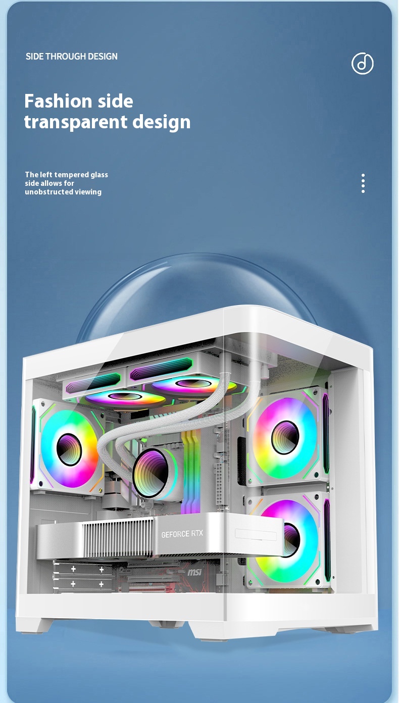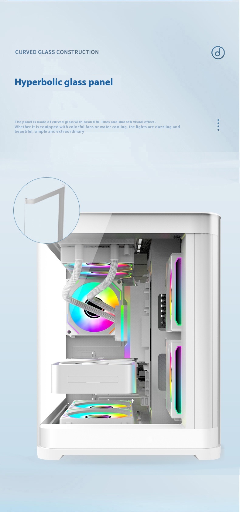 Kaareva lasikotelo pelitietokoneelle M-ATX/Mini-ITX 270° merinäköalalla USB3.0-portilla