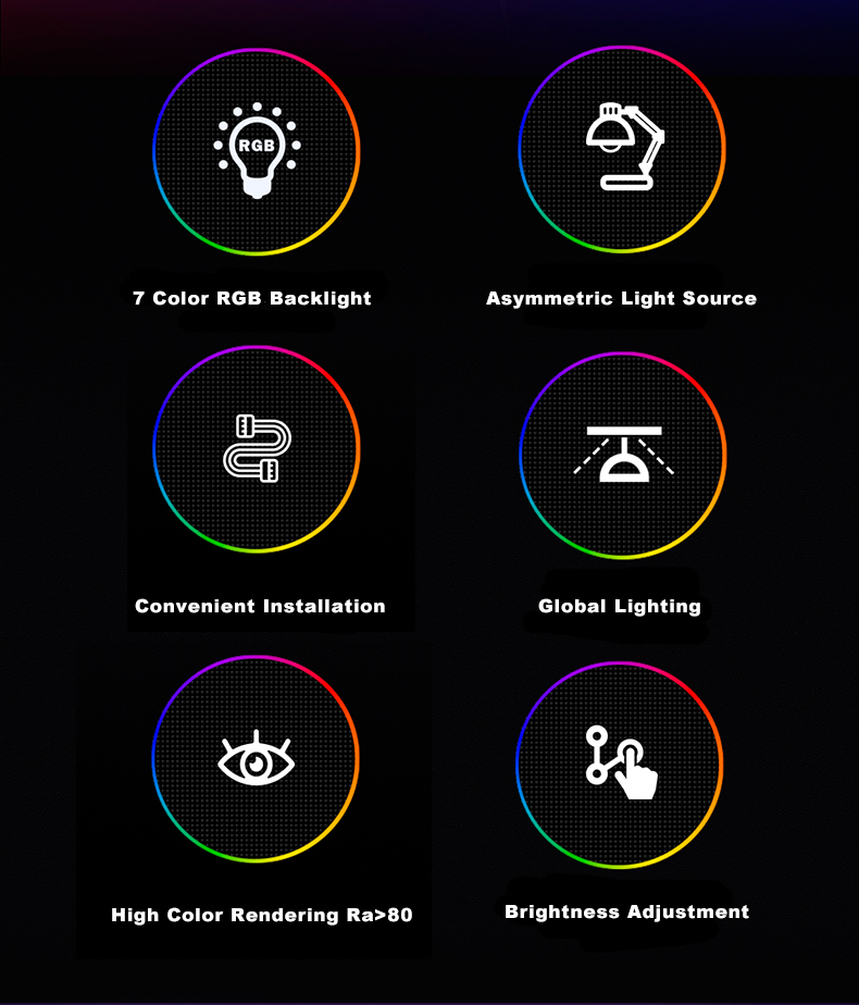 Päävalonlähde: LED (2835*66*0.5W/LED)RGB-taustavalo: 5050 0.2W RGB 12 kpl
