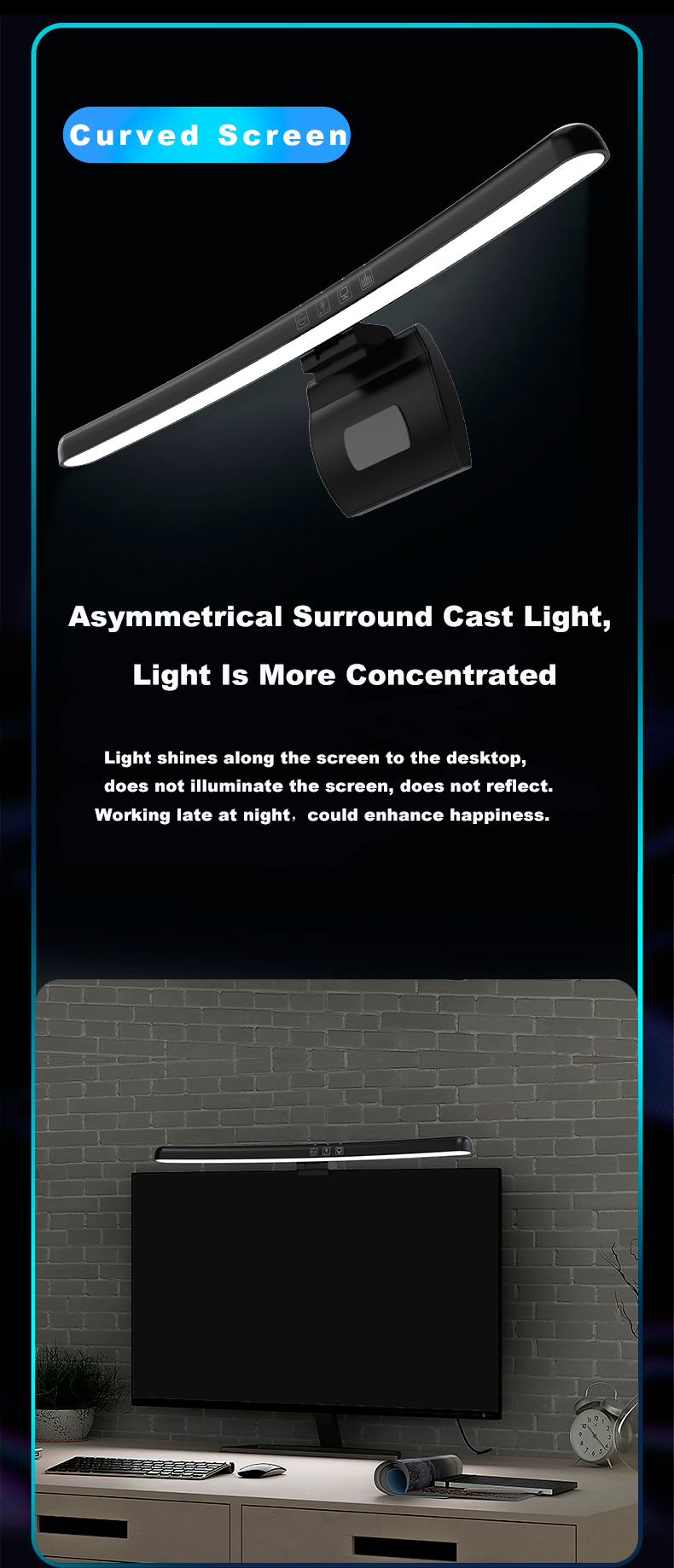 Monipuolinen työpöytävalo, jossa on portaaton himmennys, ajastin 60 minuuttia -sammutukselle ja kaksi erillistä valonlähdettä: päävalo kolmella värilämpötilalla sekä 7-värinen RGB-taustavalo. Asymmetrinen valonjako vähentää häikäisyä, ja Type-C-liitäntä tekee käytöstä helppoa.