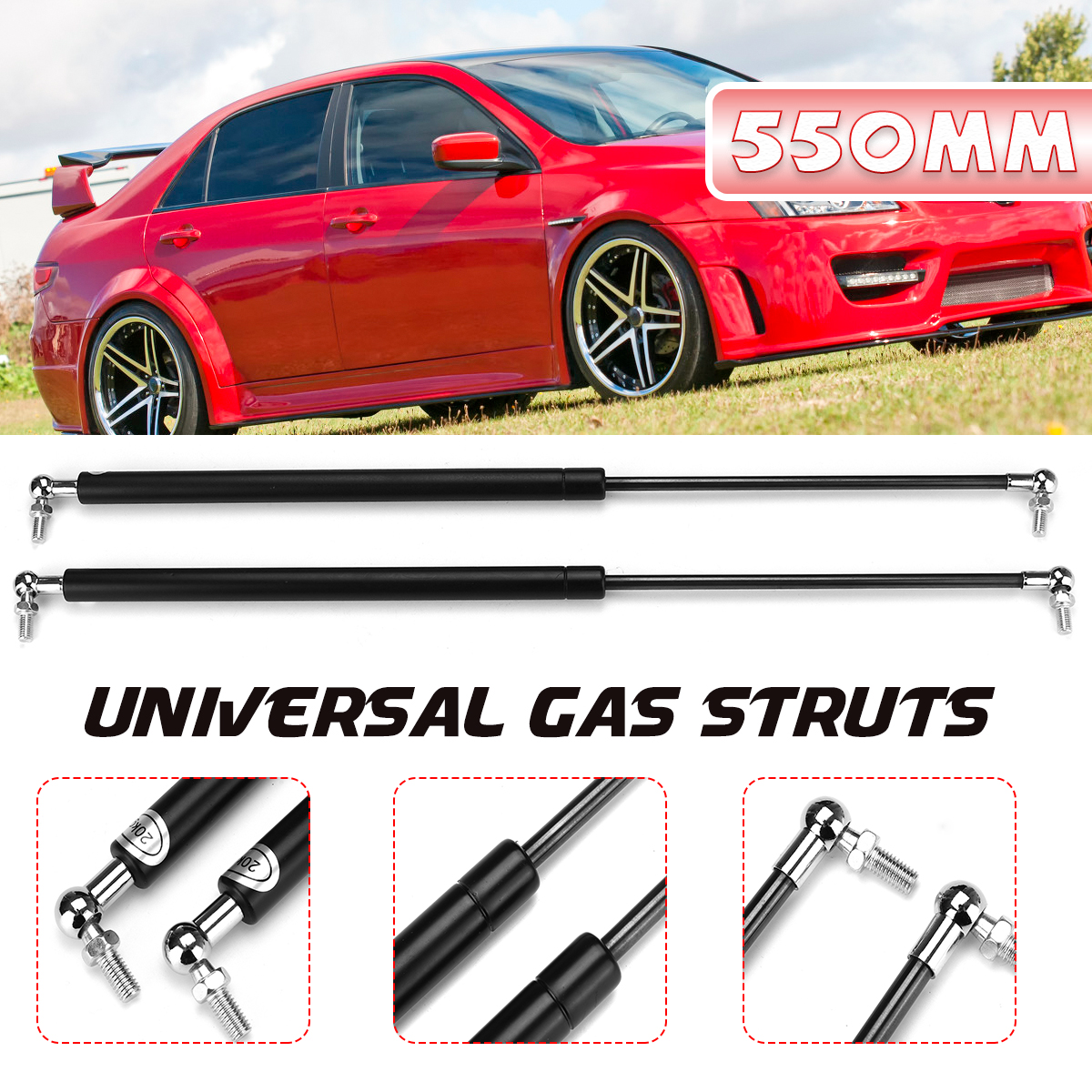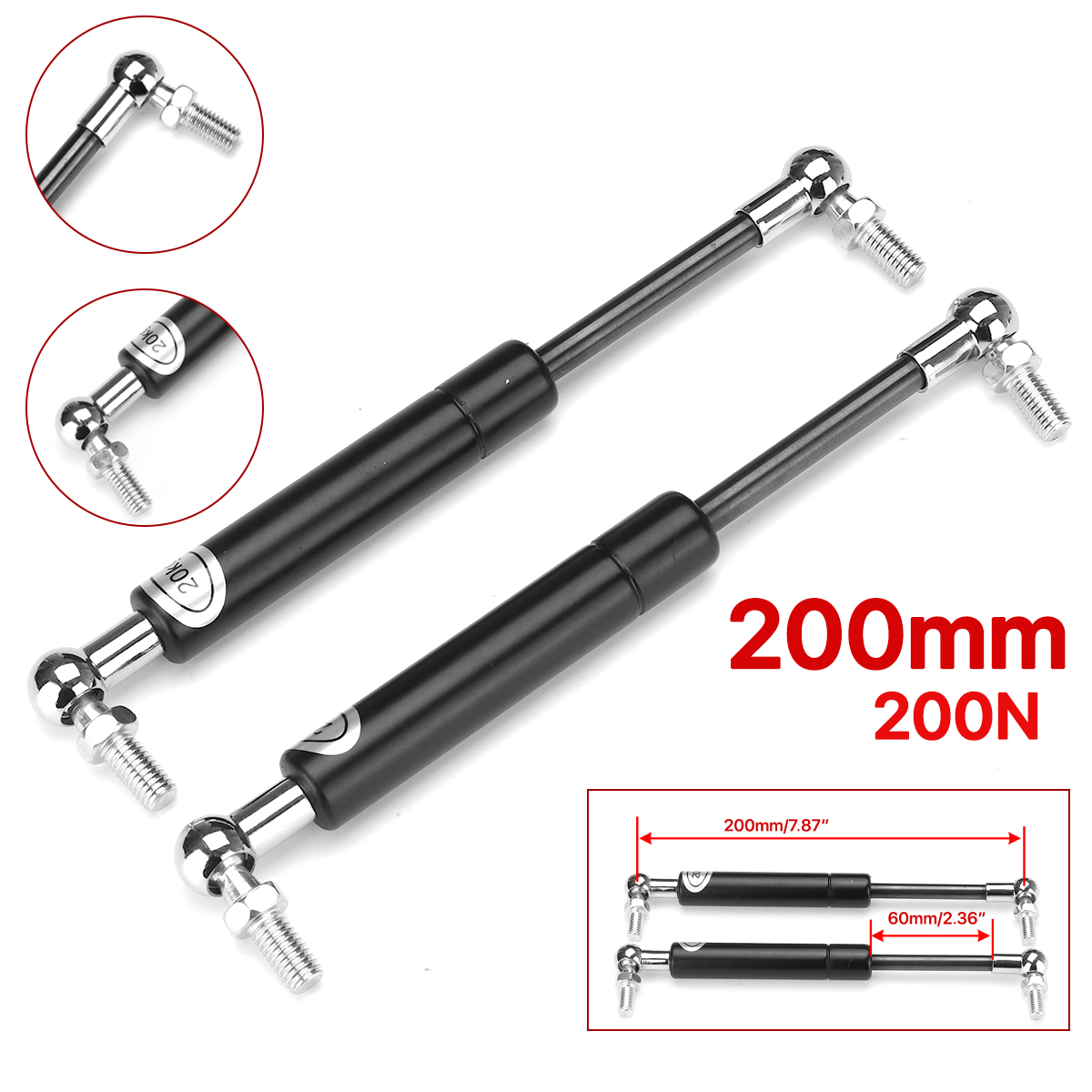 Kaasujousen pituus (keskireikä keskireikään): 200/250/300/350/400/450/500/550/600mm (Ilmoitathan haluamasi koon. Voit jättää tiedon esimerkiksi lisäämällä sähköpostiosoitteen PayPal-muistiinpanoon. Muutoin lähetämme koon satunnaisesti.)