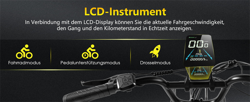 - LCD-älynäyttö värinäytöllä: nopeus, avustustaso, akkutiedot