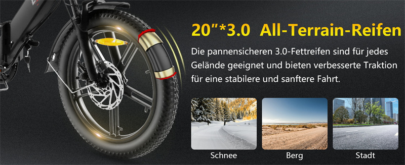 - Jousitettu etuhaarukka ja 20" x 3.0" renkaat mukavuuteen ja pitoa varten