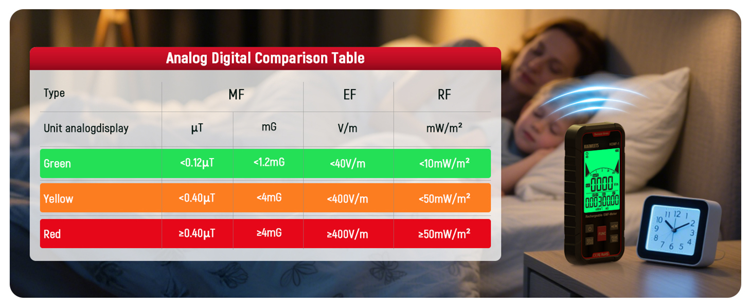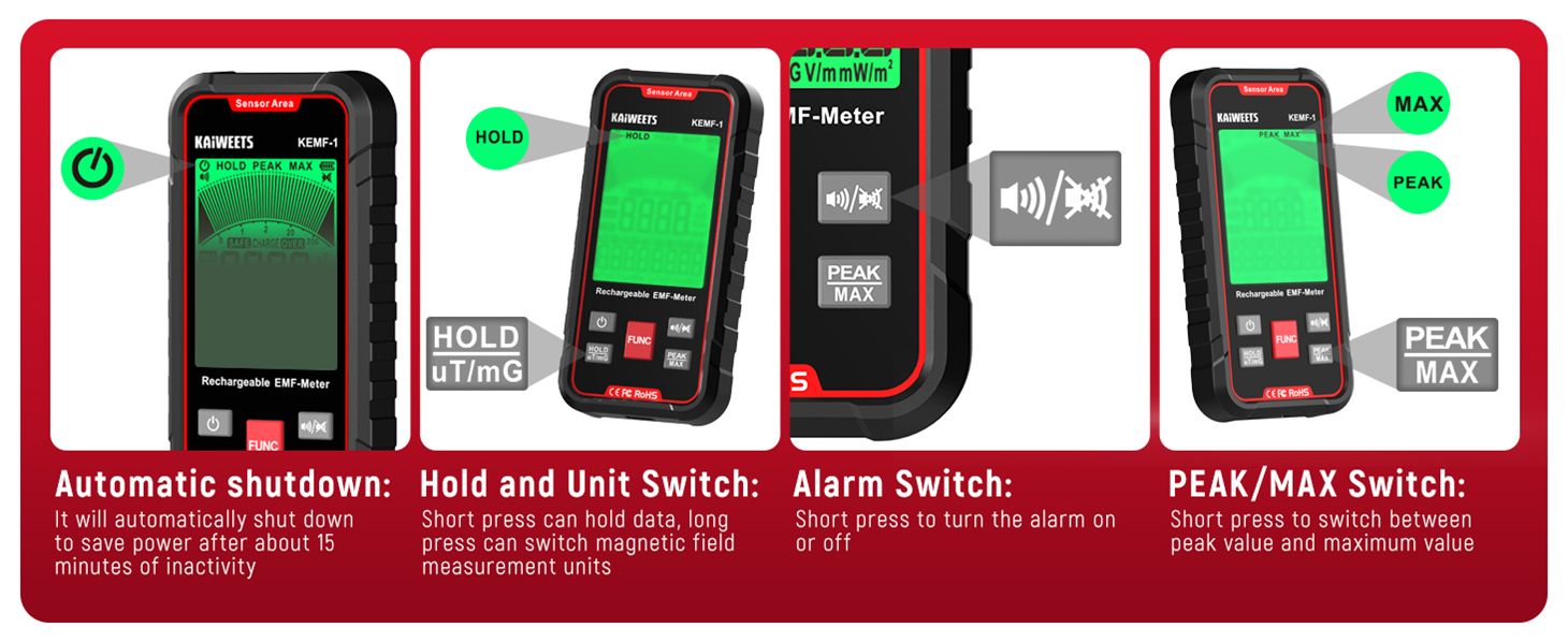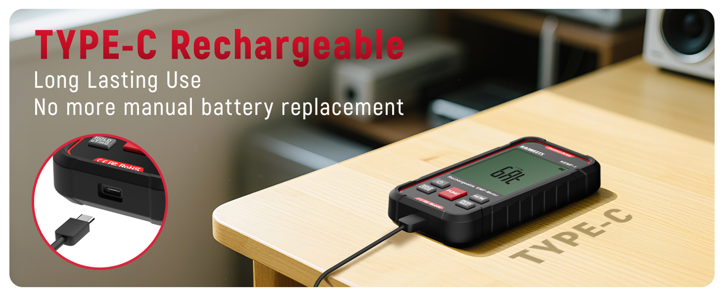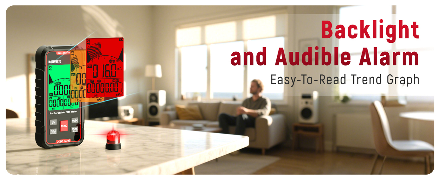 KAIWEETS KEMF-1 kolmitoiminen säteilyilmaisin ladattava magneettikenttä sähkökenttä radiotaajuus langaton hälytin trendikaavio