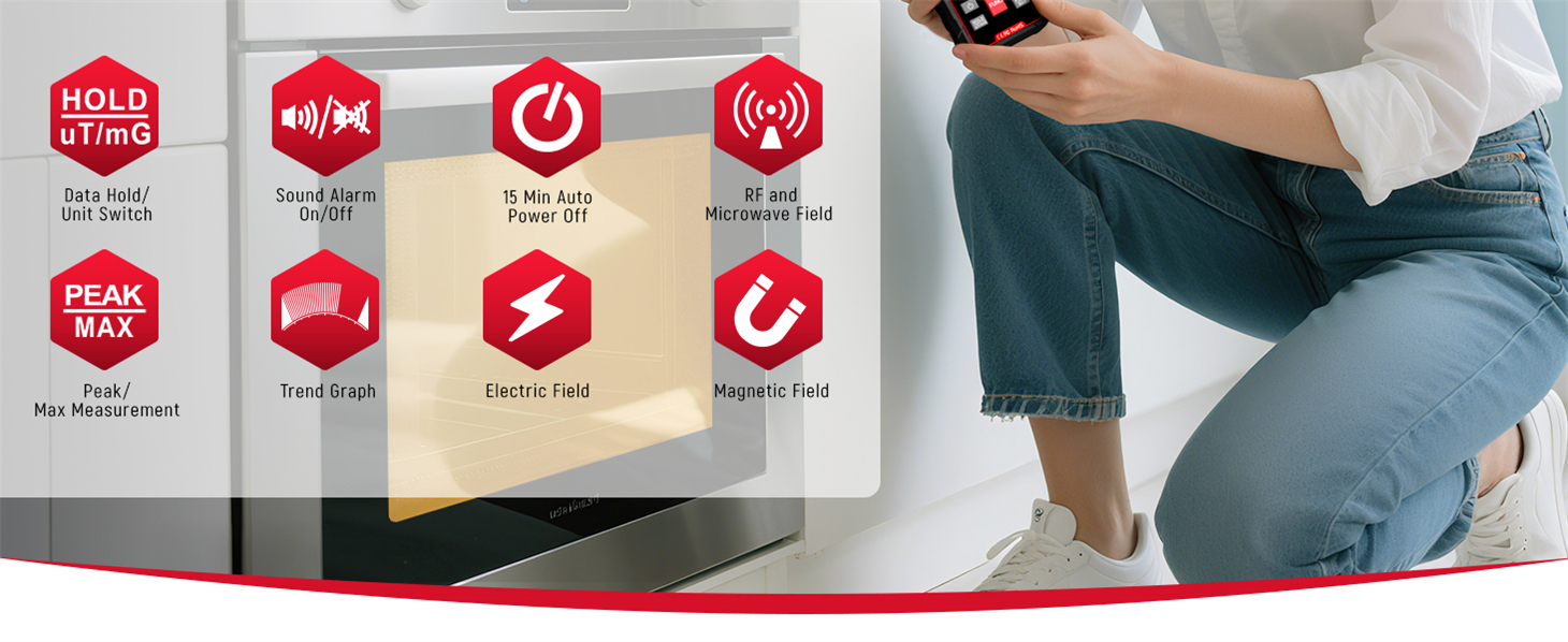 Monitoiminen mittalaite sähkömagneettisten kenttien seurantaan kotona, toimistossa ja teknisissä ympäristöissä. Laitteella voidaan mitata magneettikenttiä, sähkökenttiä sekä radiotaajuista säteilyä selkeästi samasta näytöstä.