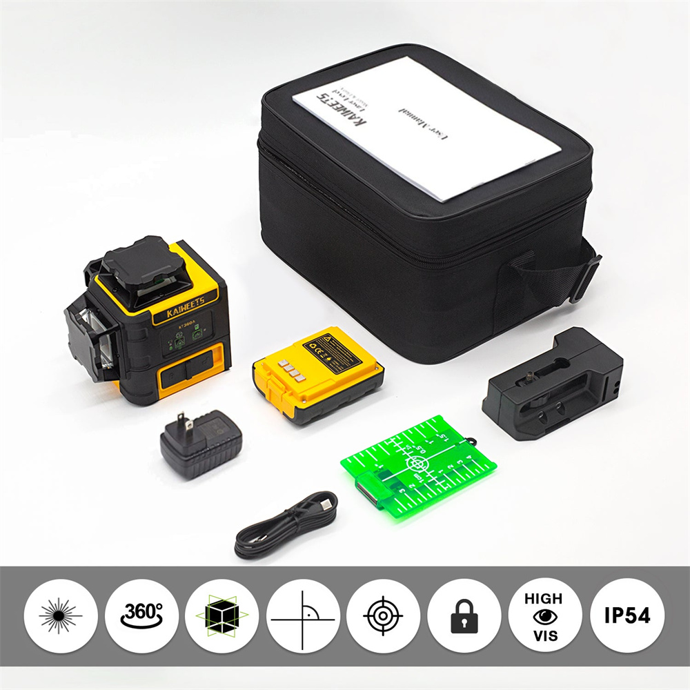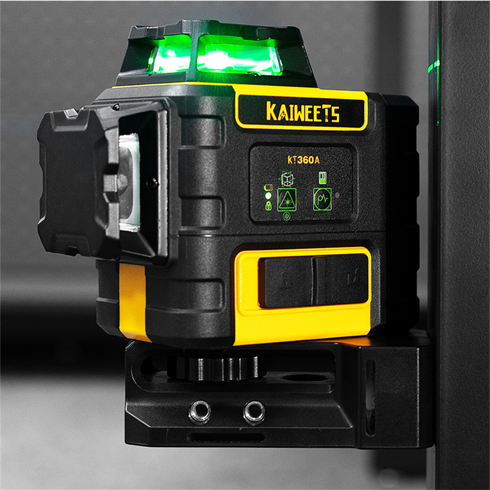 KAIWEETS KT360A lasertaso kolmella kolmesataakuusikymmenen asteen vihreillä viivoilla ladattavalla akulla IP54 ulkokäyttöön