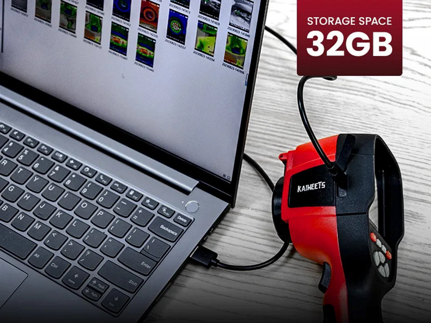 Liitä KTI-W01 Windows-tietokoneeseen reaaliaikaista lämpötilamuutosten analysointia varten tai tallenna ja analysoi dataa myöhemmin offline-tilassa. Laite tukee piste-, viiva- ja pinta-alueen lämpötilamittauksia ja sen 32G eMMC -flash-muistiin mahtuu yli 300000 kuvaa.