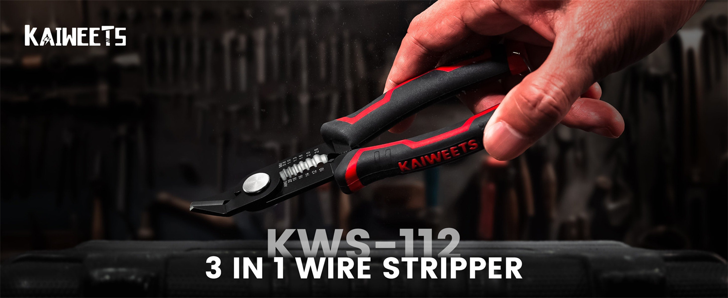 KAIWEETS KWS-112 monitoiminen johdonkuorija ja leikkuri 10–20 AWG 65Mn-teräs 30° kulmaleuat ergonominen kahva