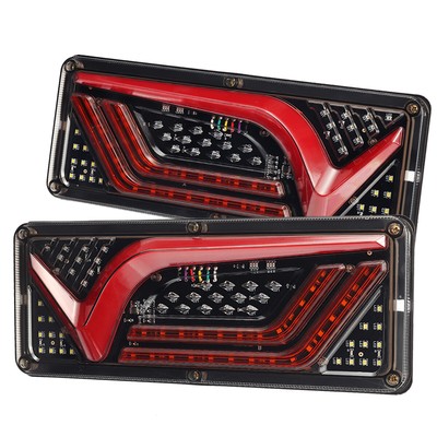 Pari 24V LED-takavaloja dynaamisella suuntavilkulla perävaunuihin, kuorma-autoihin, asuntovaunuihin ja maatalousajoneuvoihin. Vedenpitävät ja tärinää kestävät valot tarjoavat selkeän tail/jarru-, suuntavilkku- ja peruutusvalo-toiminnon.