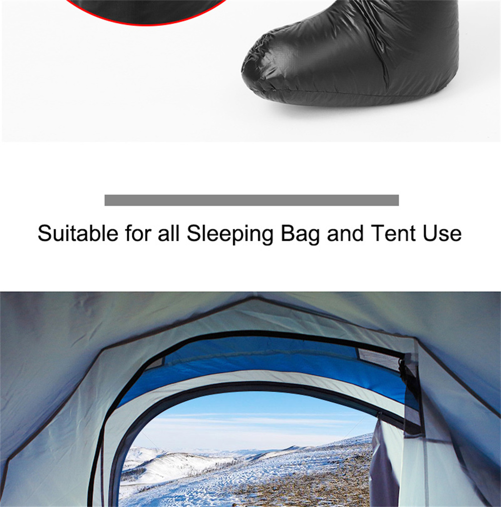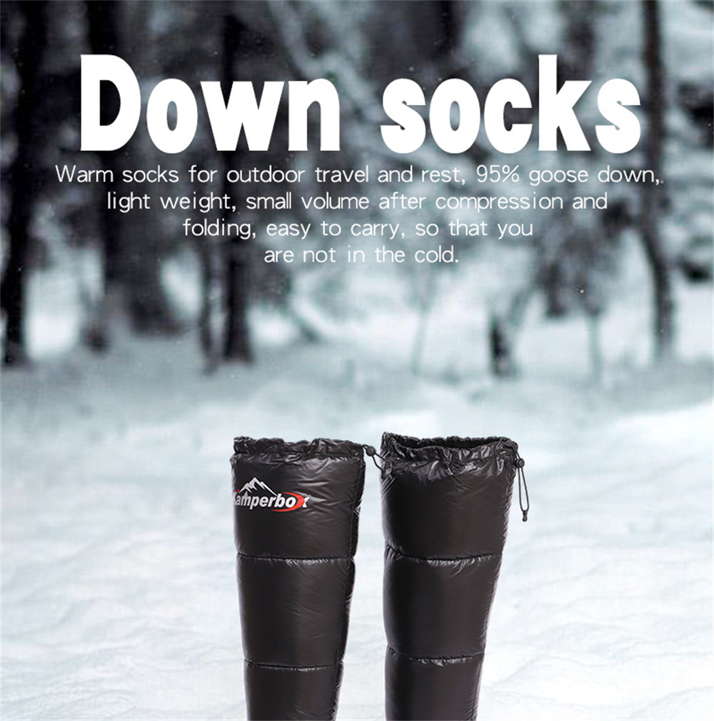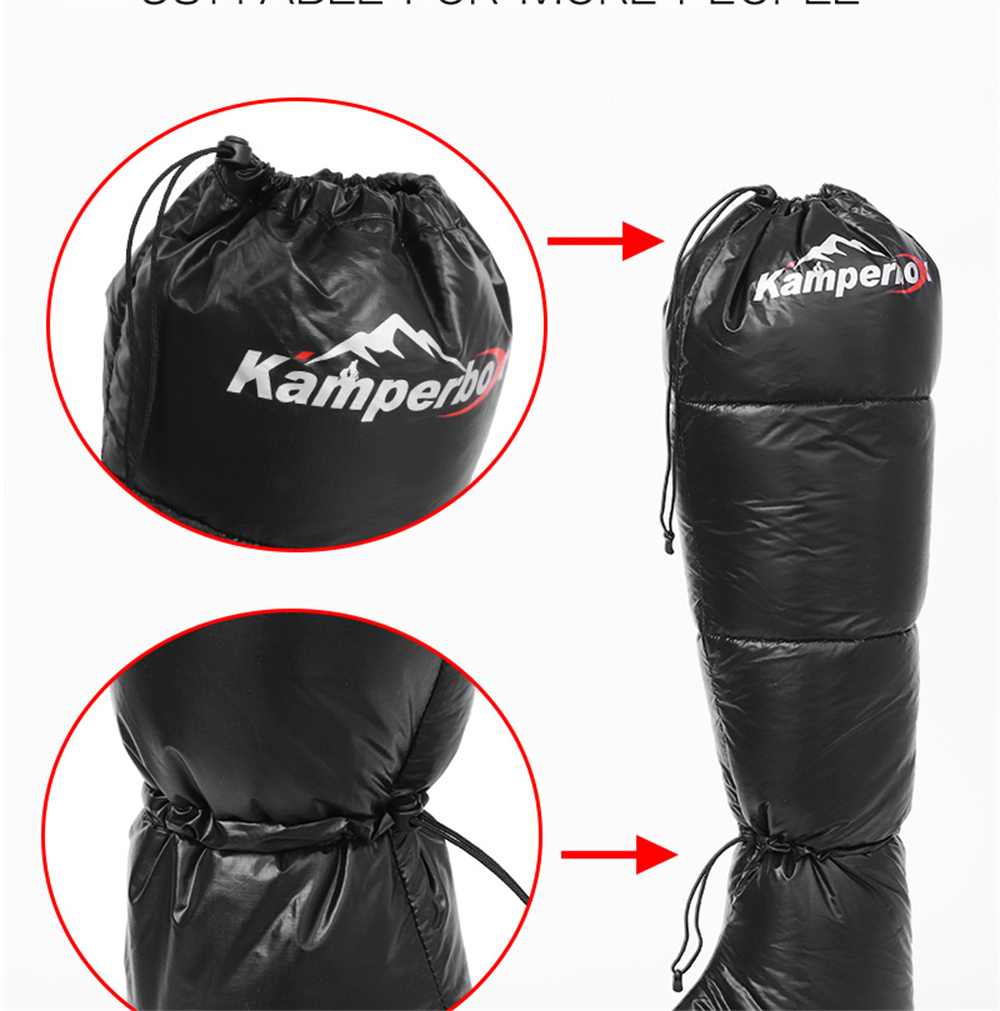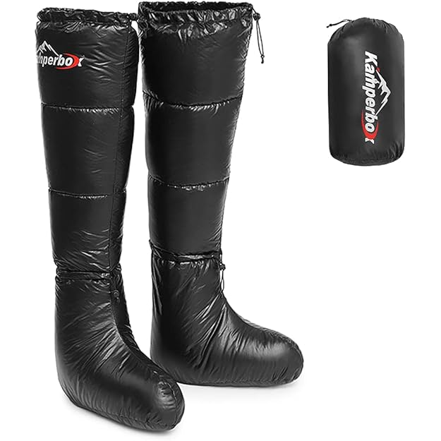 Kamperbox ulkoilmakäyttöön talviset untuvaiset lämpimät vedenkestävät tossukat kiristysnyörillä