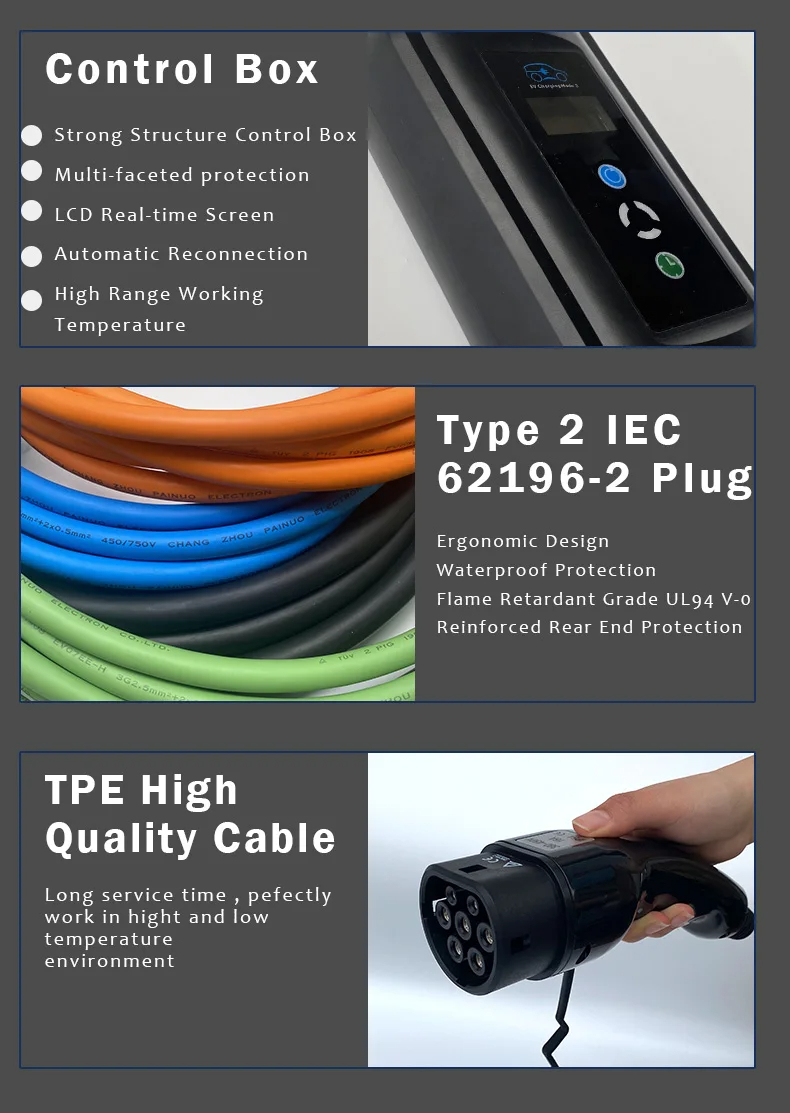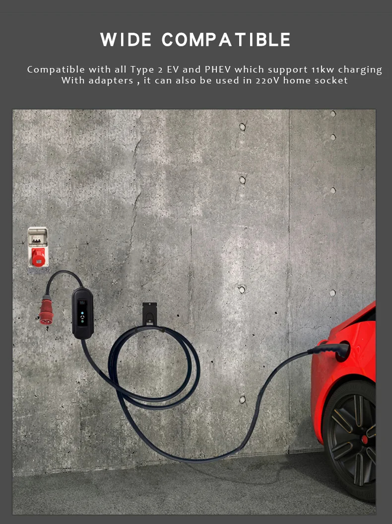 EE1650K tyyppi 2 5-metrinen seinäkiinnitteinen kannettava latausasema kotikäyttöön säädettävä 6–16A