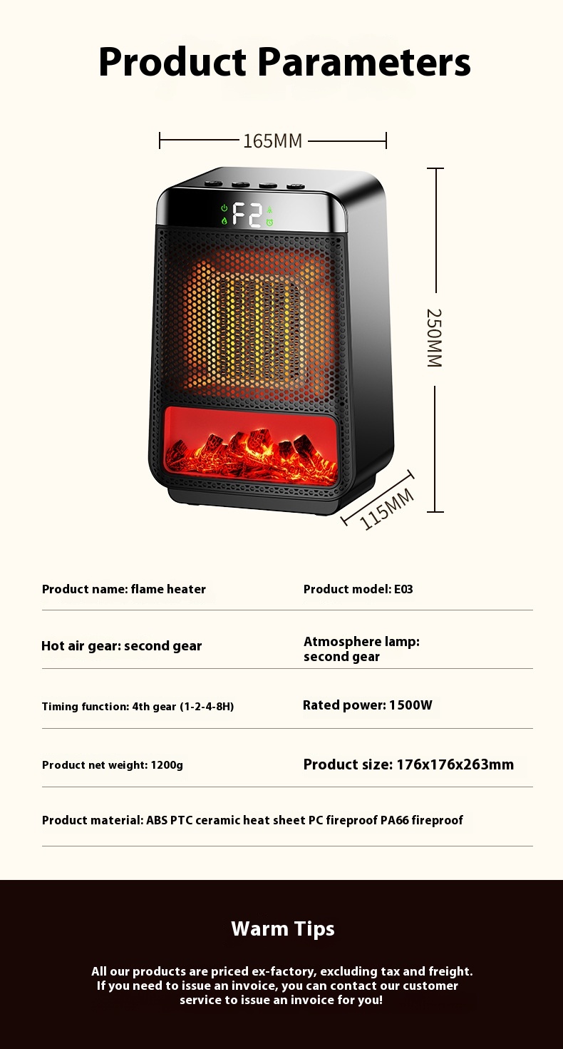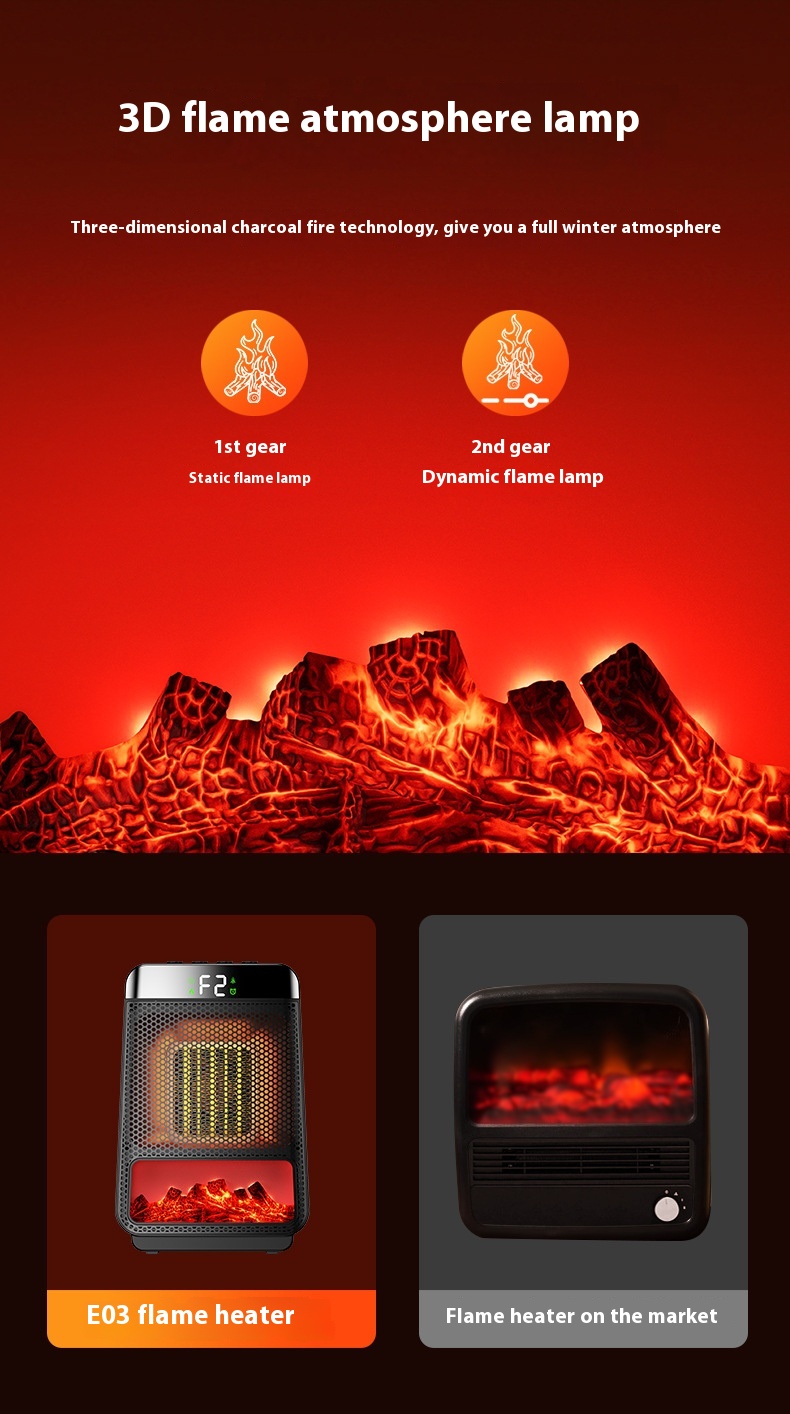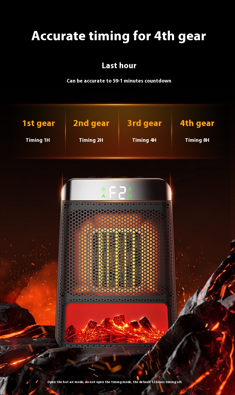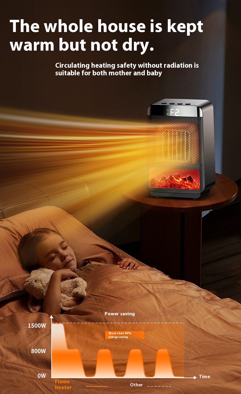 Kannettava pöytäliekkilämmitin 1500-wattinen nopea lämmitys ajastin valoefekteillä