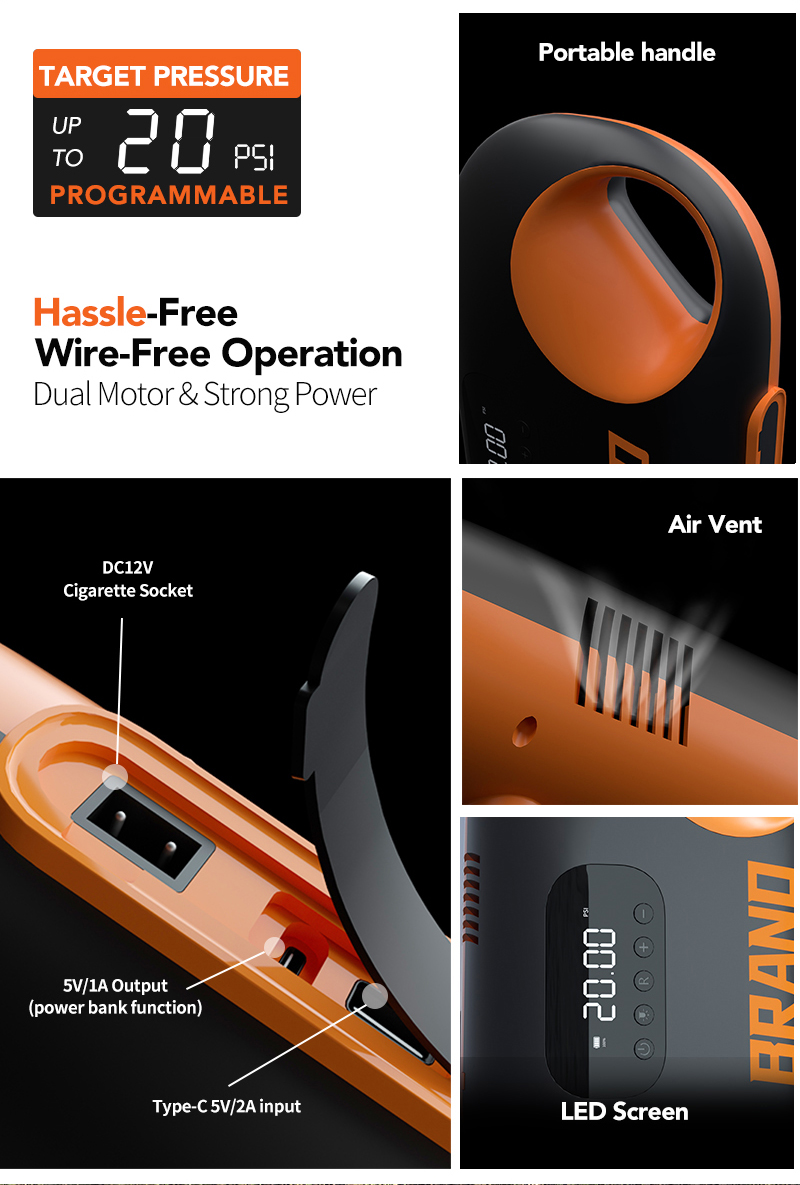 TUERBB T-AP71 kannettava langaton ilmakompressori 150PSI digitaalinen näyttö nopea renkaiden täyttö