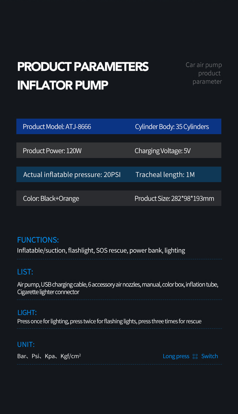 Kompakti ja helppokäyttöinen sähköinen ulkoilmapumppu nopeaan täyttöön ja tyhjennykseen. Soveltuu esimerkiksi sup-lautojen, telttojen ja muun puhallettavan varustuksen käsittelyyn. Selkeä näyttö, tarkka paineenhallinta ja sisäänrakennettu LED-valaistus helpottavat käyttöä myös hämärässä.