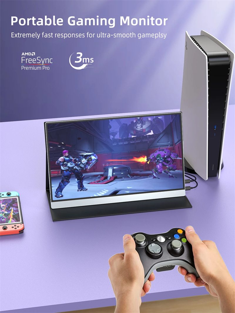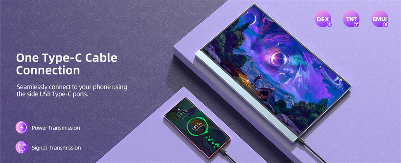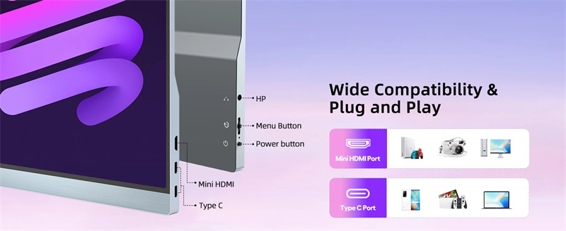 | Liitännät | 1* Mini HDM (signaalilähde) 2* Type C (täysitoiminen Type C, USB PD -protokolla), molemmat tukevat virransyöttöä ja tiedonsiirtoa 1* 3.5 mm kuulokeliitäntä |
