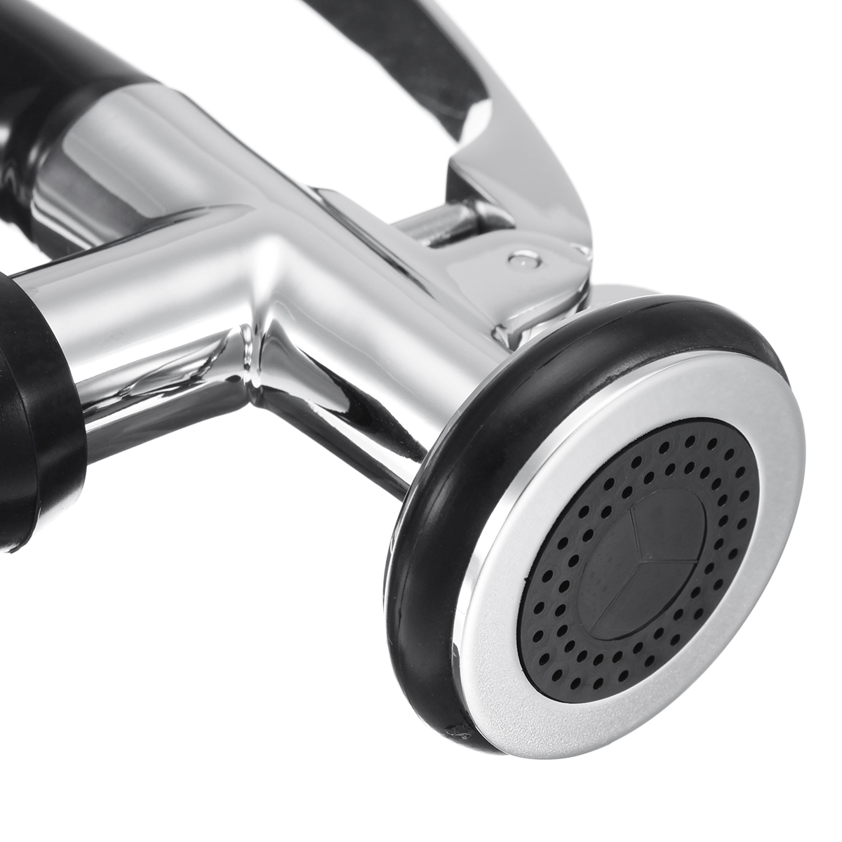 Esihuuhteluun ja päivittäiseen huuhteluun suunniteltu suutin, joka sopii keittiön ulosvedettäviin hanoihin ja raskaaseen käyttöön teollisuuskeittiöissä. Messinkinen suutinpää, ABS-kahva ja ruostumaton teräsletku takaavat kestävyyden. Ilmastin tuottaa pehmeän, roiskumattoman vedensuihkun ja auttaa myös veden suodatuksessa. Kahvan vapauttaminen katkaisee veden automaattisesti.