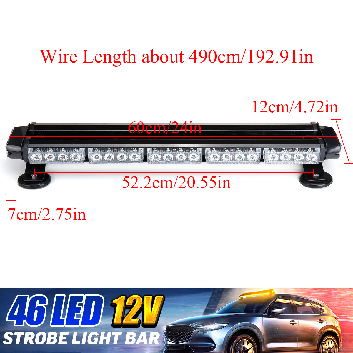 Keltainen 24 tuuman 12 voltin 46 ledin kaksipuolinen hätävilkkuvalopalkki autoon