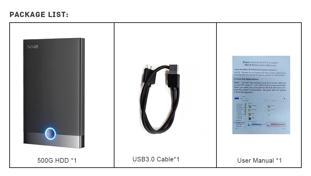 KINHANK 500Gt pelikovalevy yli 60000 retropeliä 70 emulaattoria PS2/PS1/N64 USB3.0 Windows