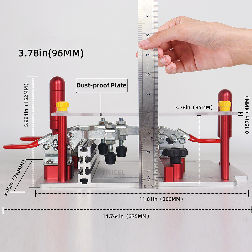 Nelitoiminen alumiininen jyrsinurakiinnike kaapin laitteistoon ympyräleikkausohjain 90–370 mm