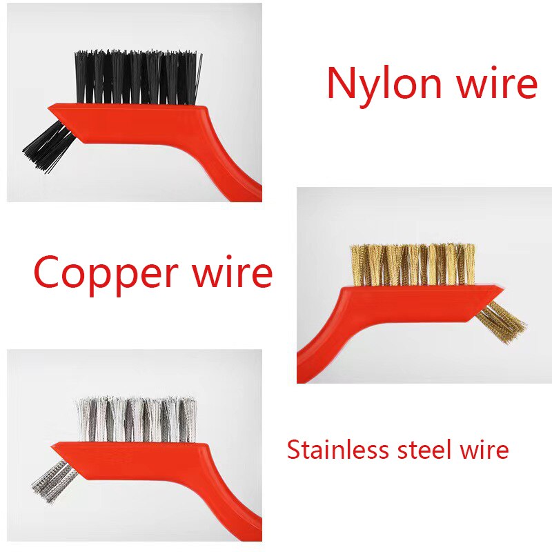 Kolme pyöreää puhdistusharjaa ruosteenpoistoon ruostumaton teräs kuparilanka muoviharjakset
