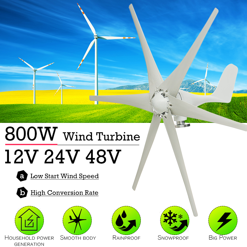 Kotitalouskäyttöön 800 W huippoteho 6-lapainen vaakasuuntainen tuuliturbiini 12/24/48 V