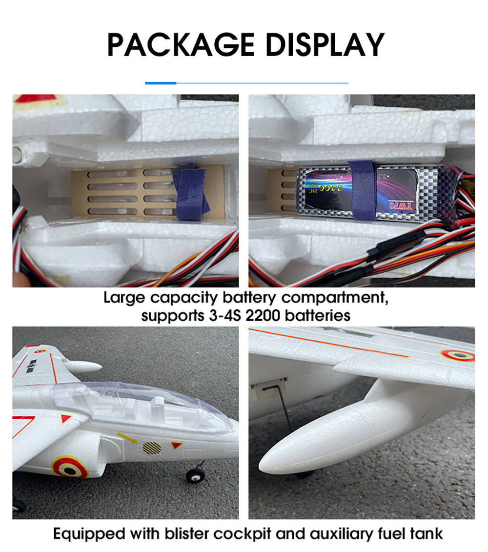- Edistynyt suunnittelu: Siipien kärkiväli 740mm ja tuki 64mm suihkuturbiinille tarjoavat hyvän suorituskyvyn ja tarkan ohjattavuuden.