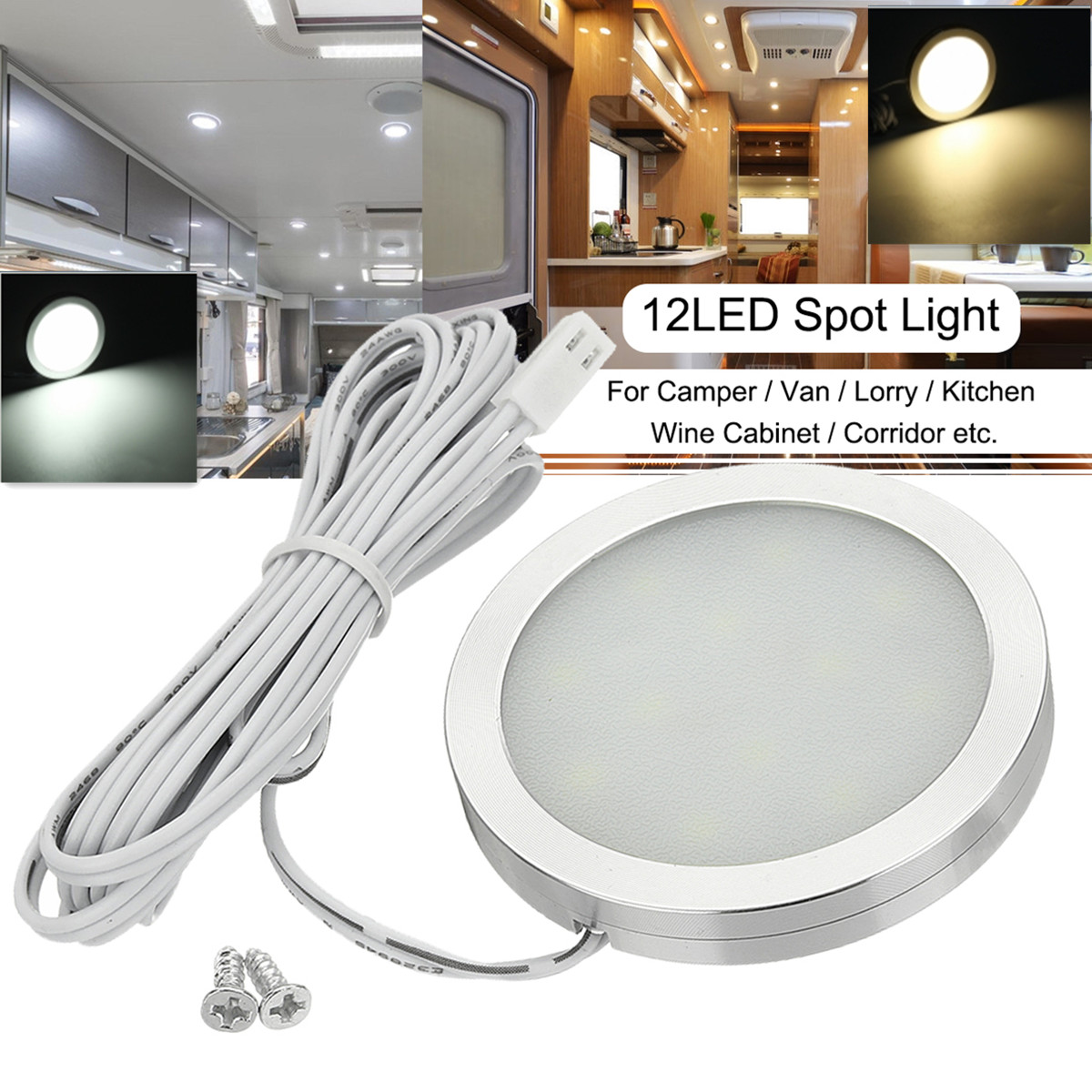 Kompakti 12V sisätilan kohdevalo alumiinirungolla. Tehokas 2835 LED-siru tuottaa kirkkaan valon (valkoinen tai lämmin valkoinen) pienellä 2.5W teholla ja hyvällä lämmönpoistolla. Sopii ajoneuvoihin (matkailuauto, kuorma-auto, asuntovaunu, linja-auto, vene, VW T4/T5) sekä kotiin esimerkiksi vaatekaappeihin, keittiön kaappeihin, kaappeihin ja kirjahyllyihin.