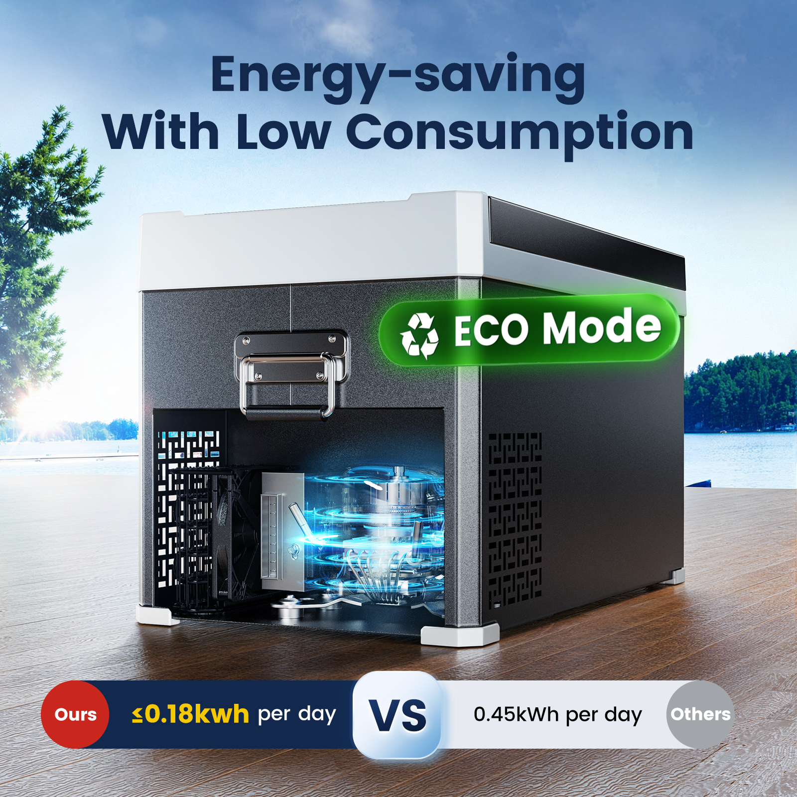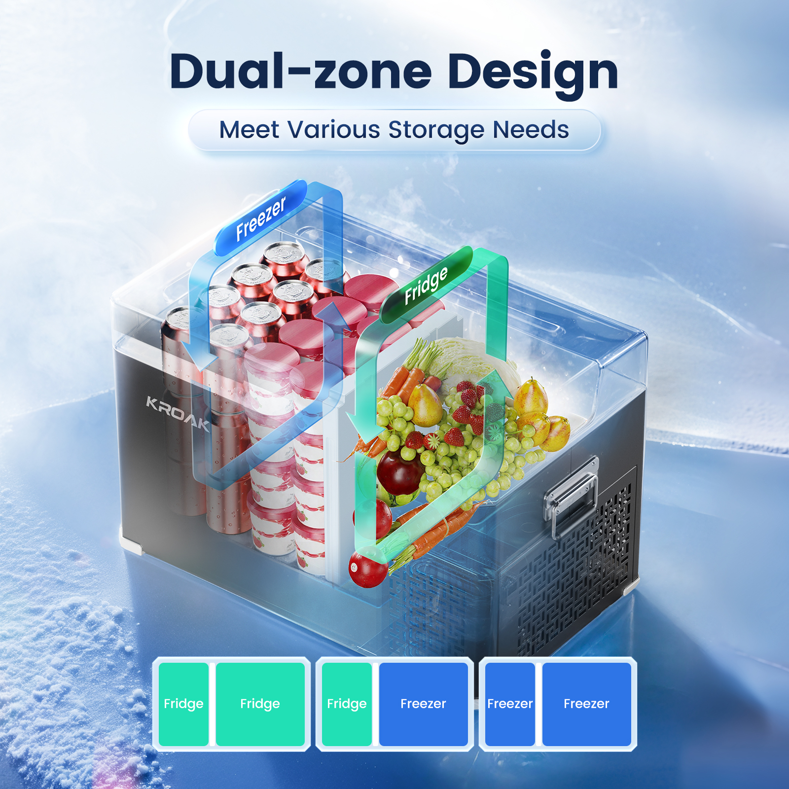 LED-näytöllinen kosketusohjaus helpottaa lämpötilan säätöä välillä - 20 ℃ ~ 20 ℃ / - 4 ℉ ~ 68 ℉. Irrotettava väliseinä mahdollistaa kahden lämpötila-alueen käytön samanaikaisesti, tai sen voi poistaa suurta 30L tilaa varten. Rakenne on suunniteltu kestämään epätasaisia teitä ja vaihtelevia sääolosuhteita.