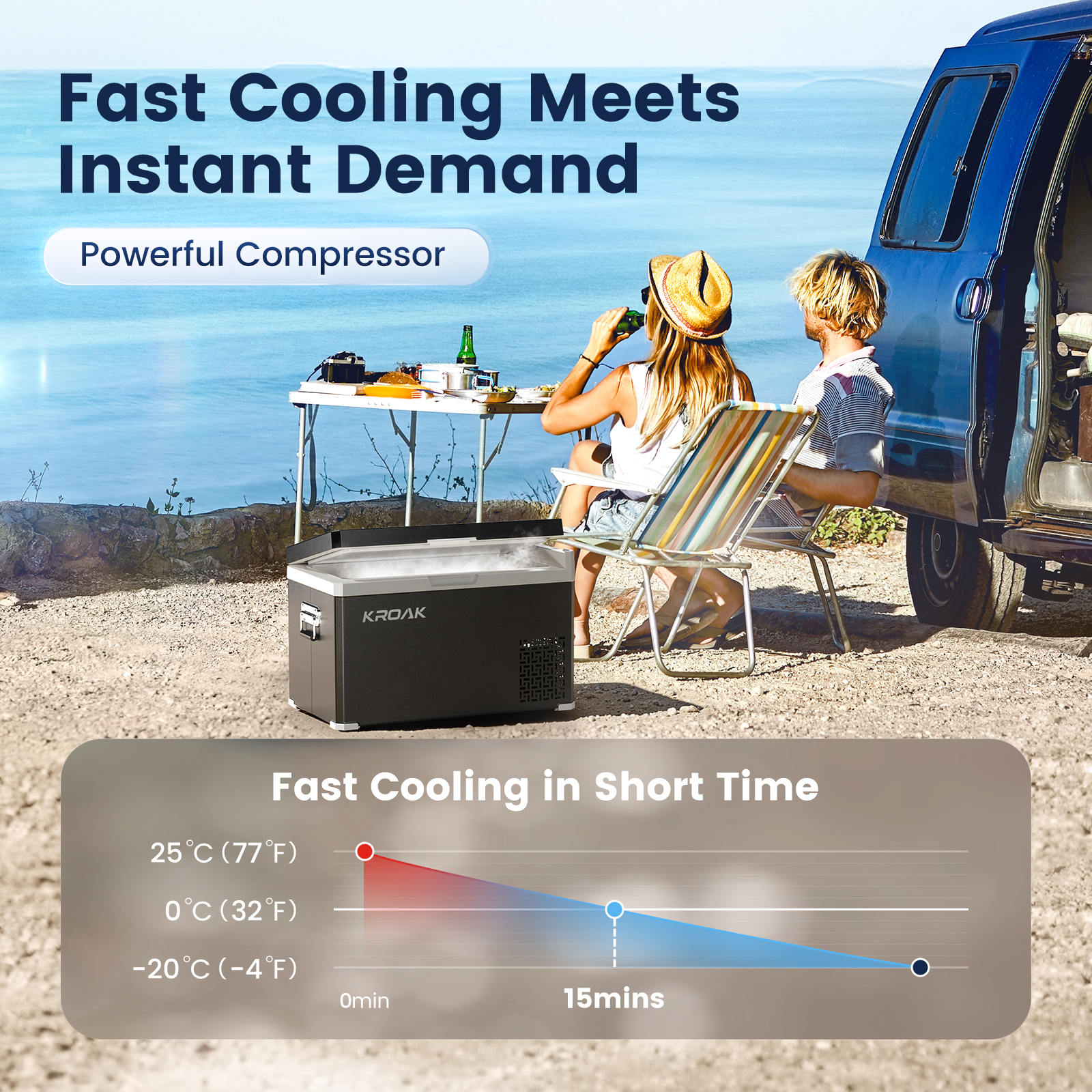 KROAK 30L/40L -autojääkaappi-pakastin tuo viilennyksen ja pakastuksen tien päälle ja kotiin. Nopea kylmennys, kaksialueinen käyttö väliseinällä, hiljainen käynti ja akkusuojaus tekevät siitä toimivan kumppanin retkille, matkailuautoon, veneeseen ja kotiin.