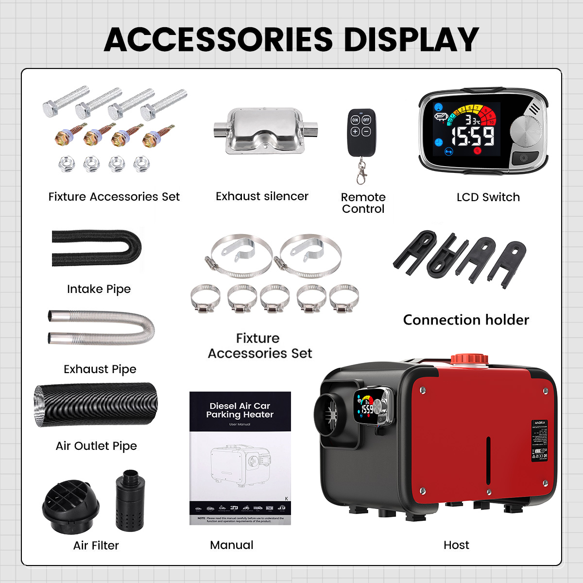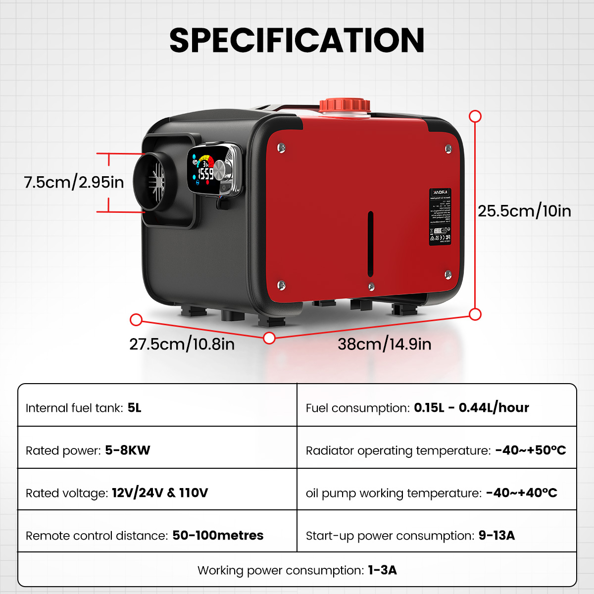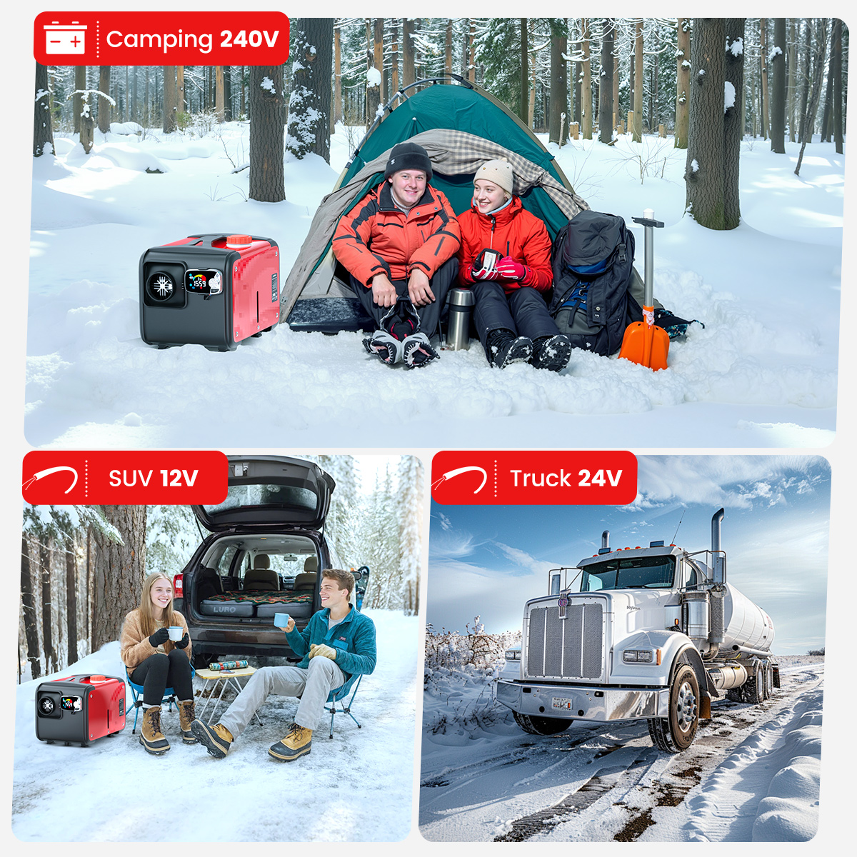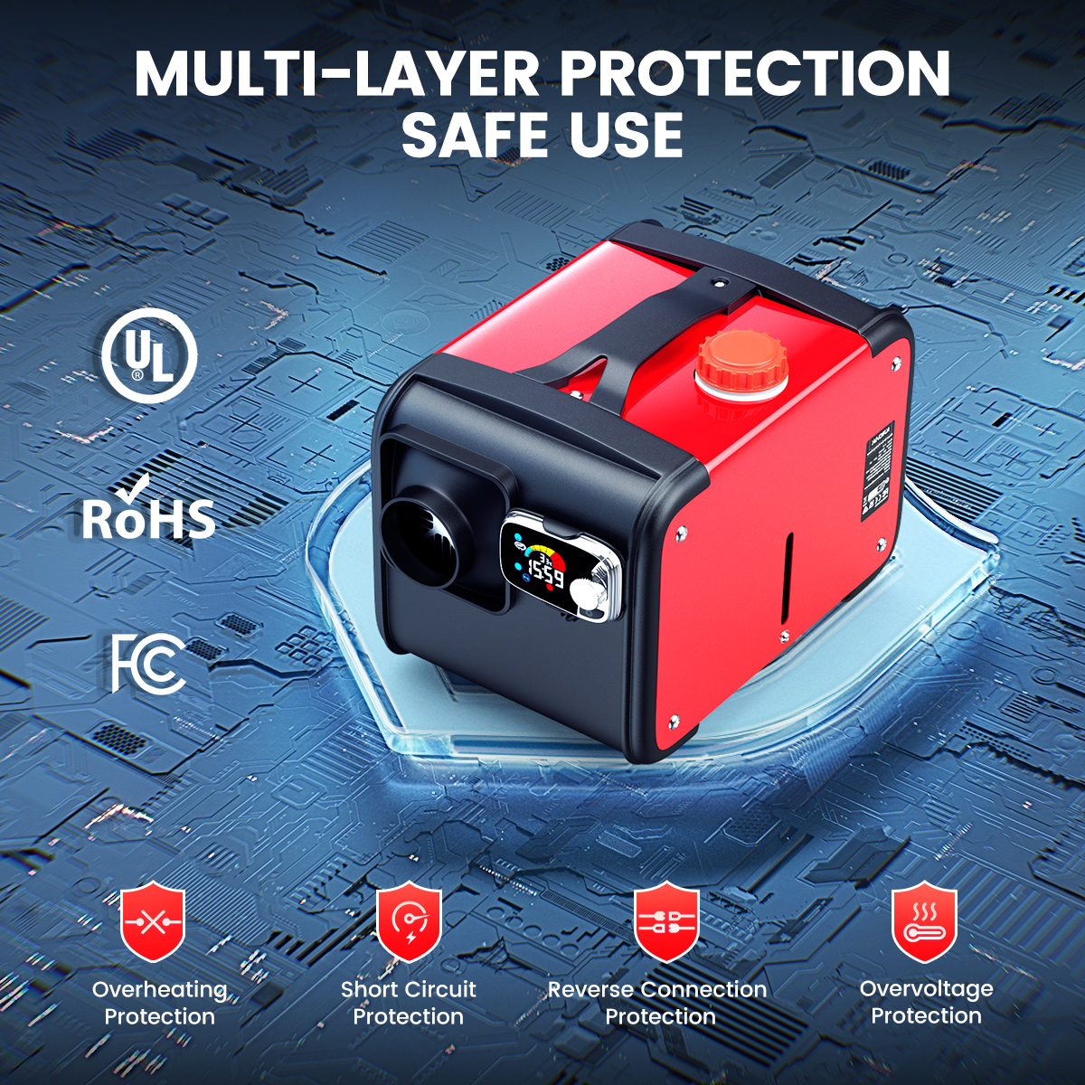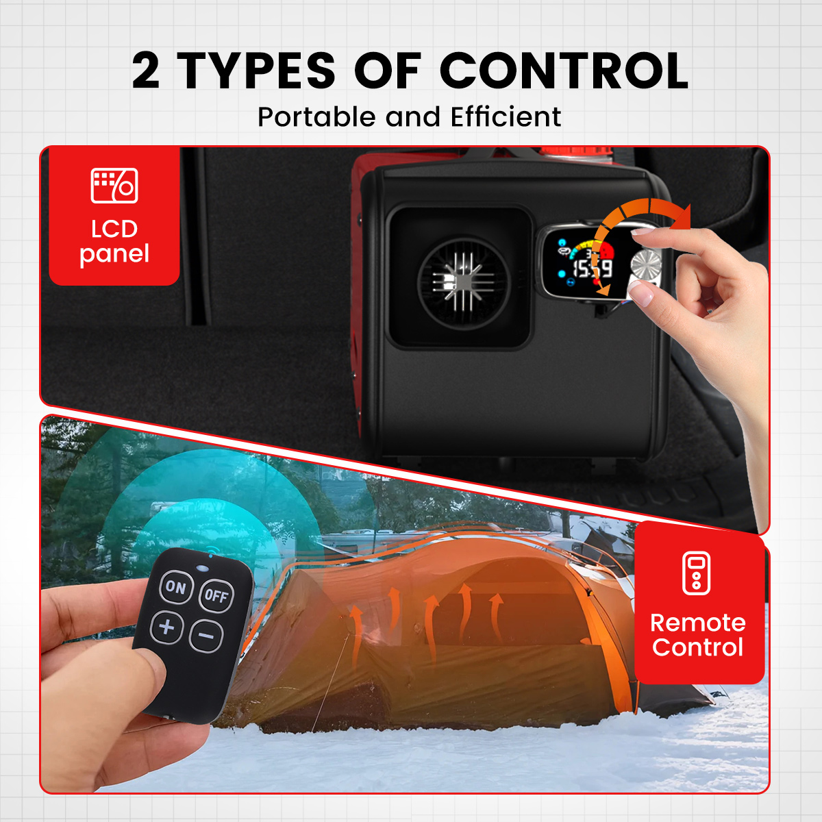 Kannettava dieselilmalämmitin tuottaa tasaista lämpöä ajoneuvoihin, veneisiin, työtiloihin ja muihin pieniin sisätiloihin. Kompakti runko säästää tilaa ja sisäänrakennettu säiliö helpottaa polttoainetason seurantaa. LCD-ohjaus ja kaukosäädin tekevät käytöstä vaivatonta.