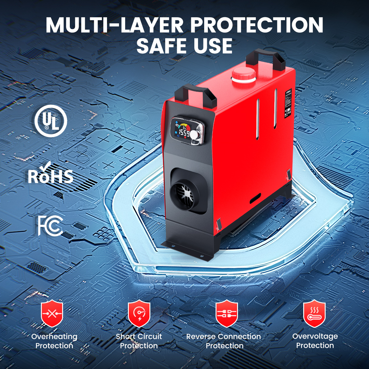 KROAK K-S diesel-ilmanlämmitin 12V/24V 5–8kW termostaatilla ja sovittimella
