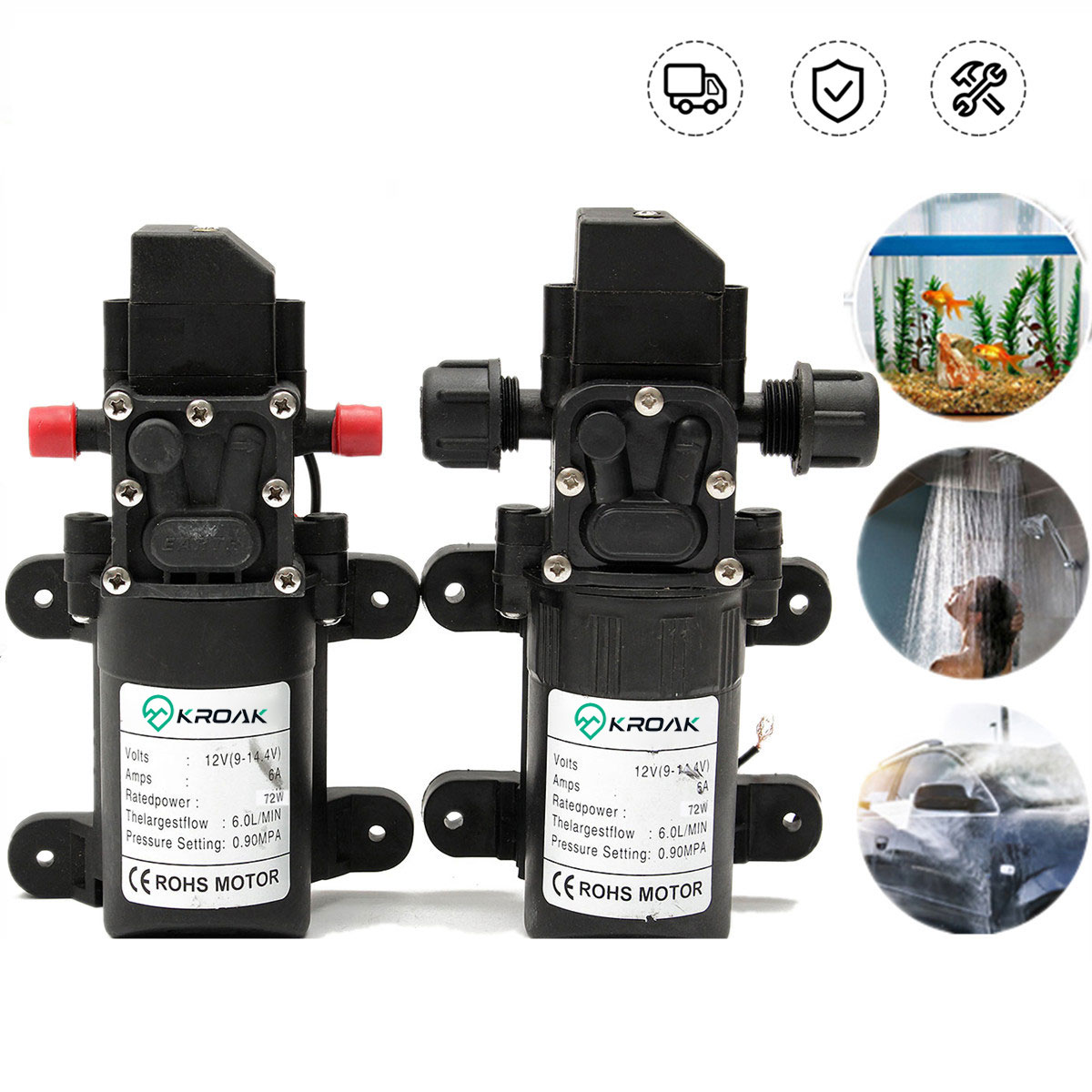 KROAK korkeapaineinen kalvopumppu 12V 72W 6l/min 130PSI itseimevä FL-3308 matkailuvaunu vene