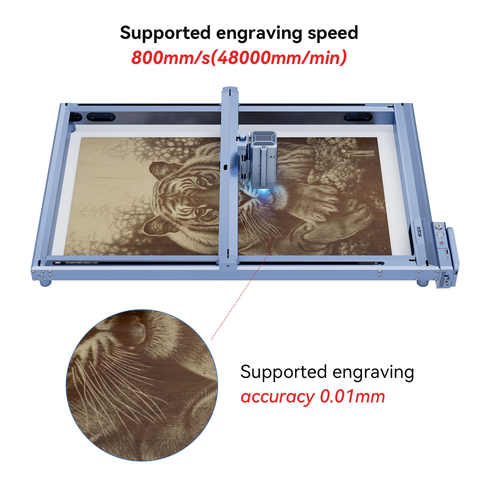 1. Laajennettu työalue: Laajennussarja kasvattaa laserkaivertimen työalueen kokoon 750*410 mm, jolloin suurempien ja monipuolisempien projektien kaivertaminen on vaivatonta.