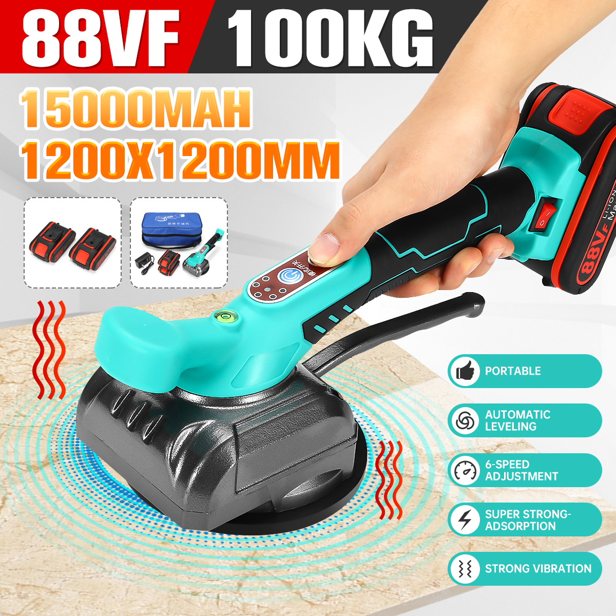 Laatoituskone 18 V 6-nopeuksinen tärinällä ja imulla led-valolla 120x120 cm keraamisille laatoille 2 akkua mukana