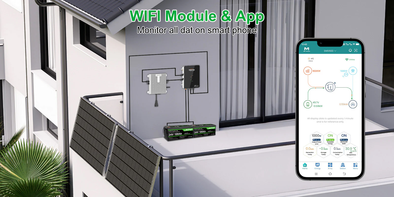 LANPWR TENTEK 1600W 2 MPPT älykäs EMS-ohjain mikroinvertterillä parvekkeelle