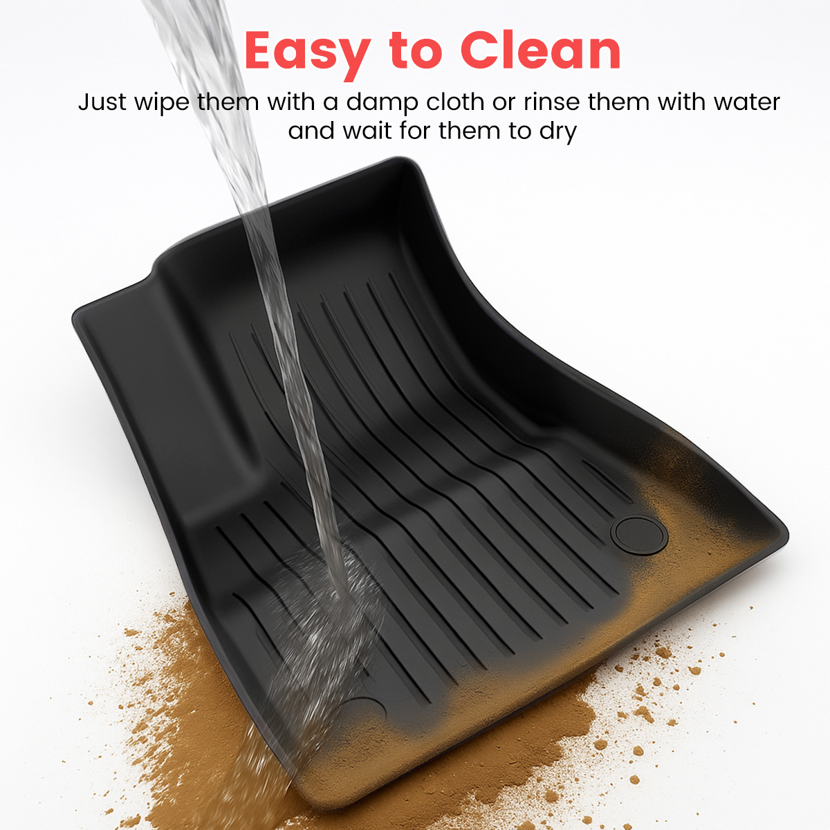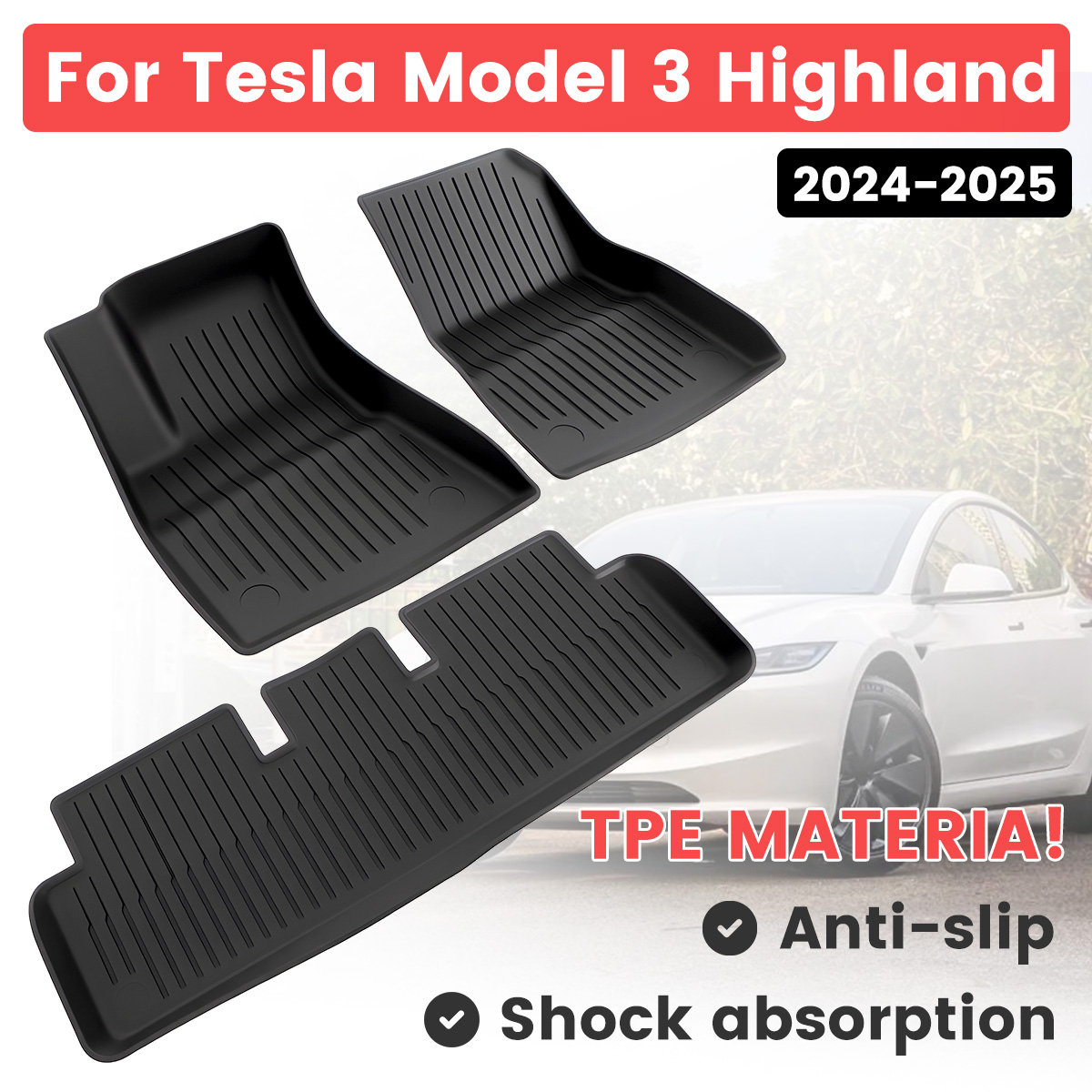 Kolmiosainen lattiamattosarja, joka on mitoitettu tarkasti Tesla Model 3 Highland -sisätilaan. Kestävästä ja hajuttomasta termoplastisesta elastomeerista (TPE) valmistetut matot suojaavat likaa, vettä ja lumi- sekä mutaroiskeita vastaan ja on helppo pitää puhtaana.