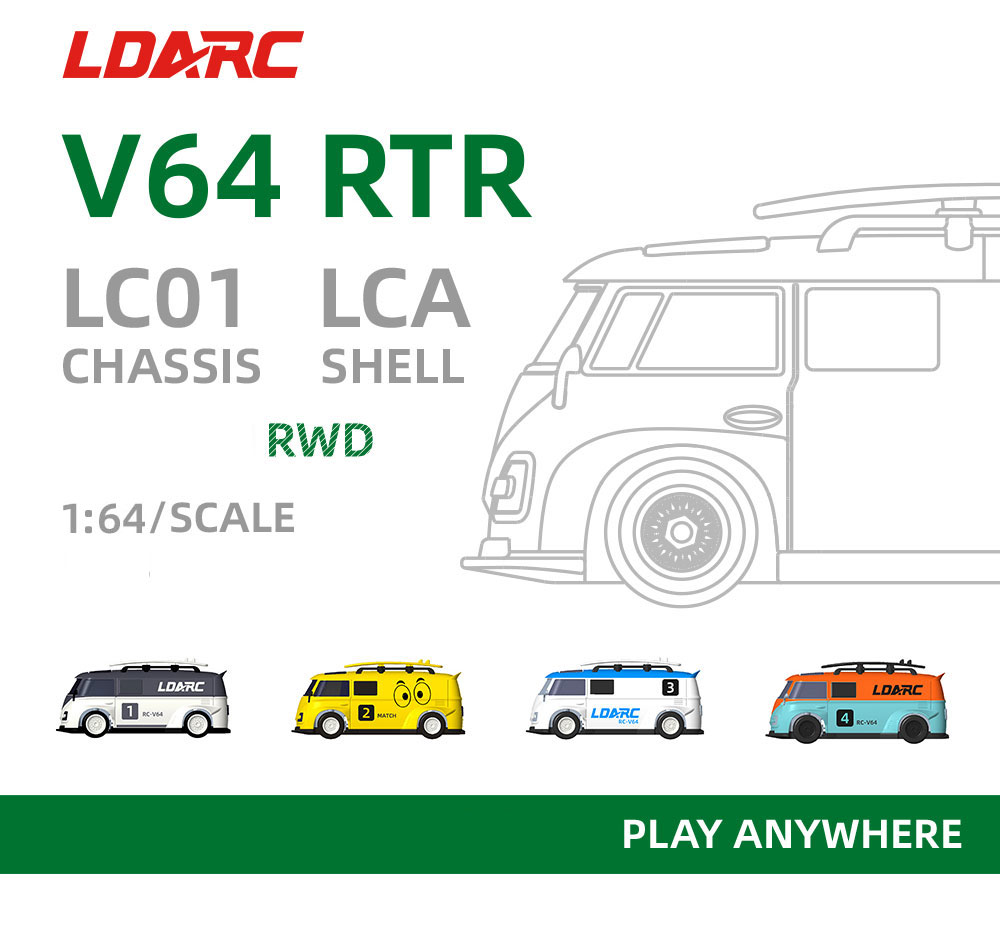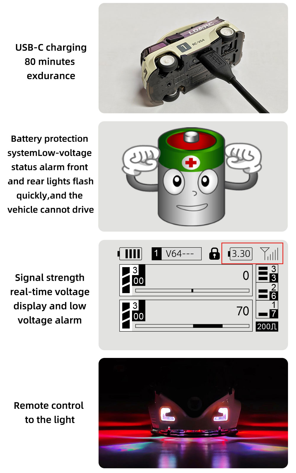LDARC V64 1/64 LC01 takavetoinen radiolla ohjattava driftaava pieni auto LED-valoilla 80 minuutin peliaika