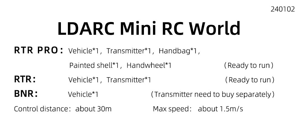 Tuotemerkki: LDARC Runkomalli: LC01 Suurin nopeus: 1.5 m/s |