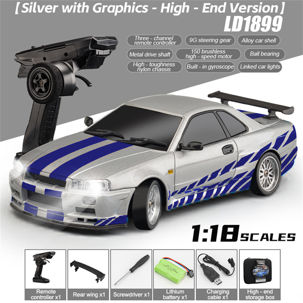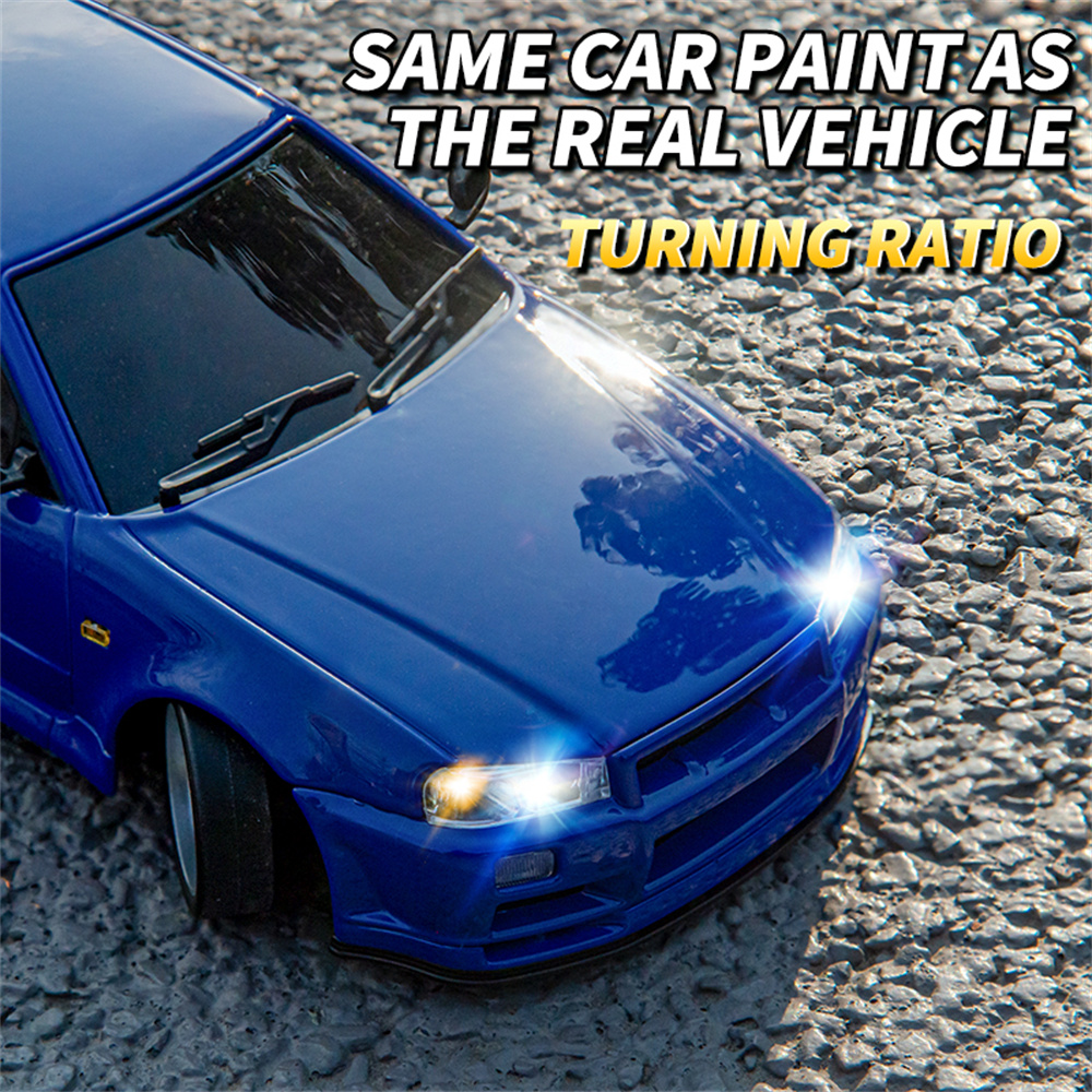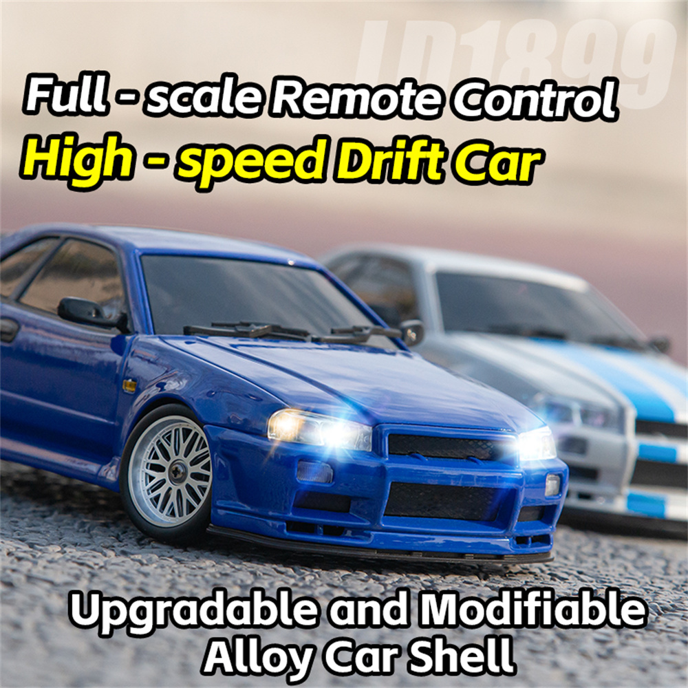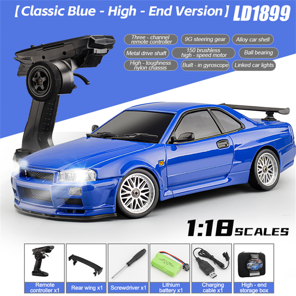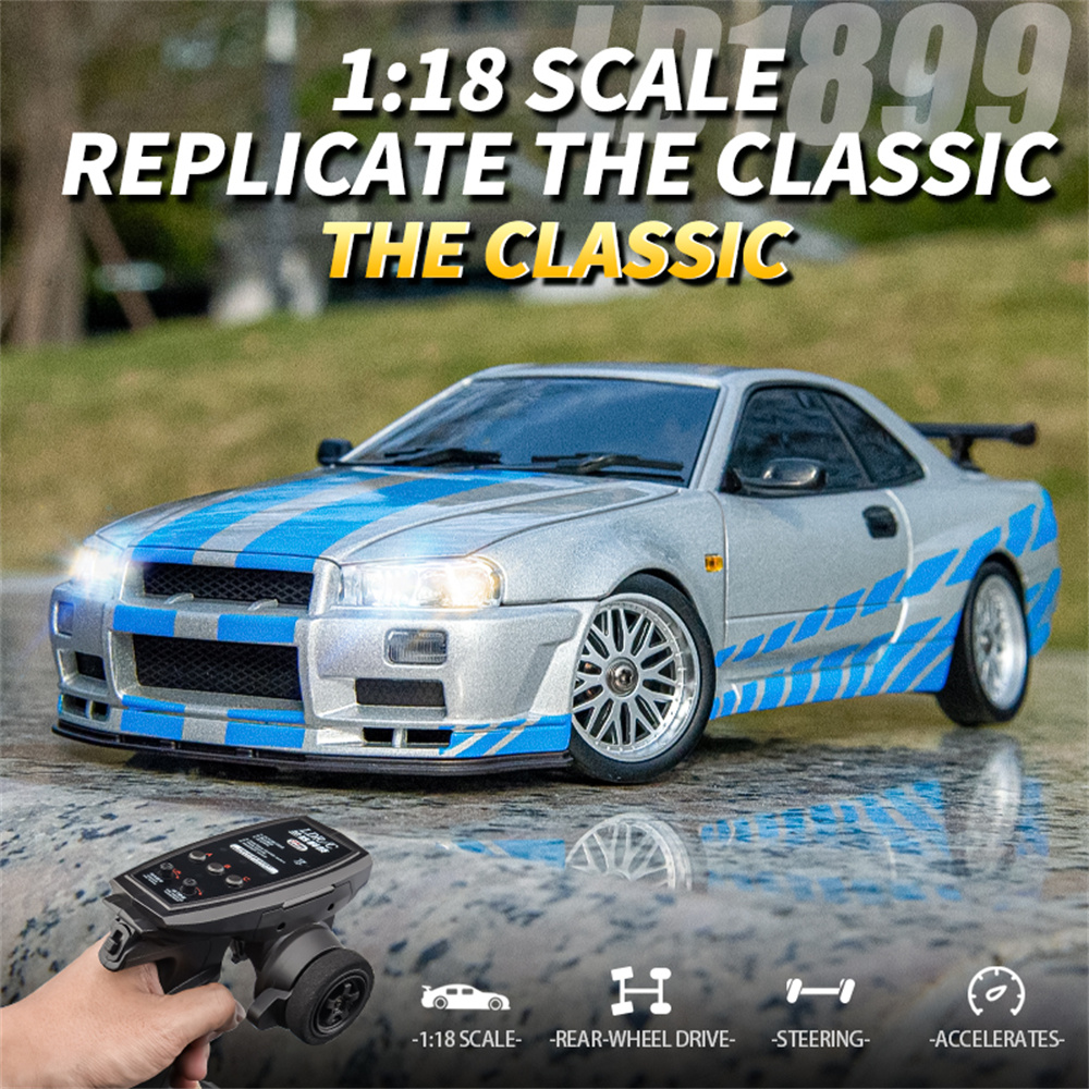 LDRC 1899/A99 valmiiksi koottu 1/18 GTR R34 radio-ohjattava drift-auto takaveto gyroskooppi LED-valot