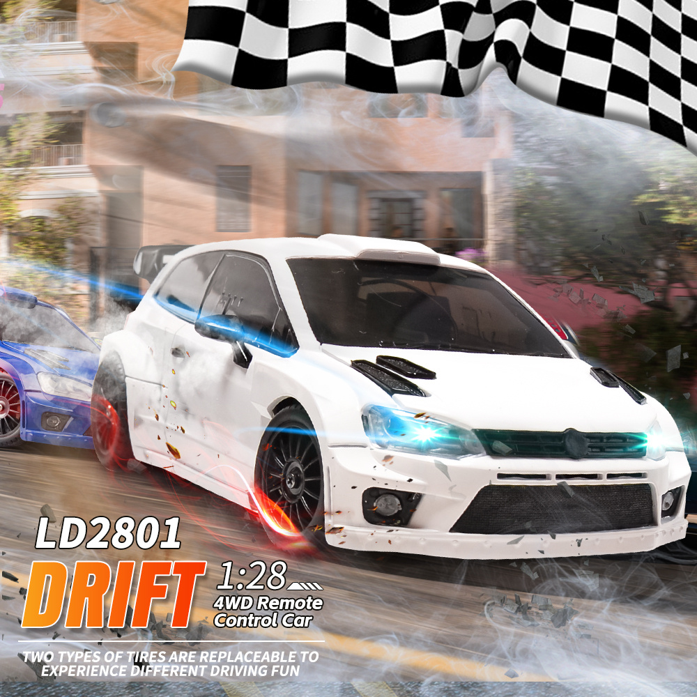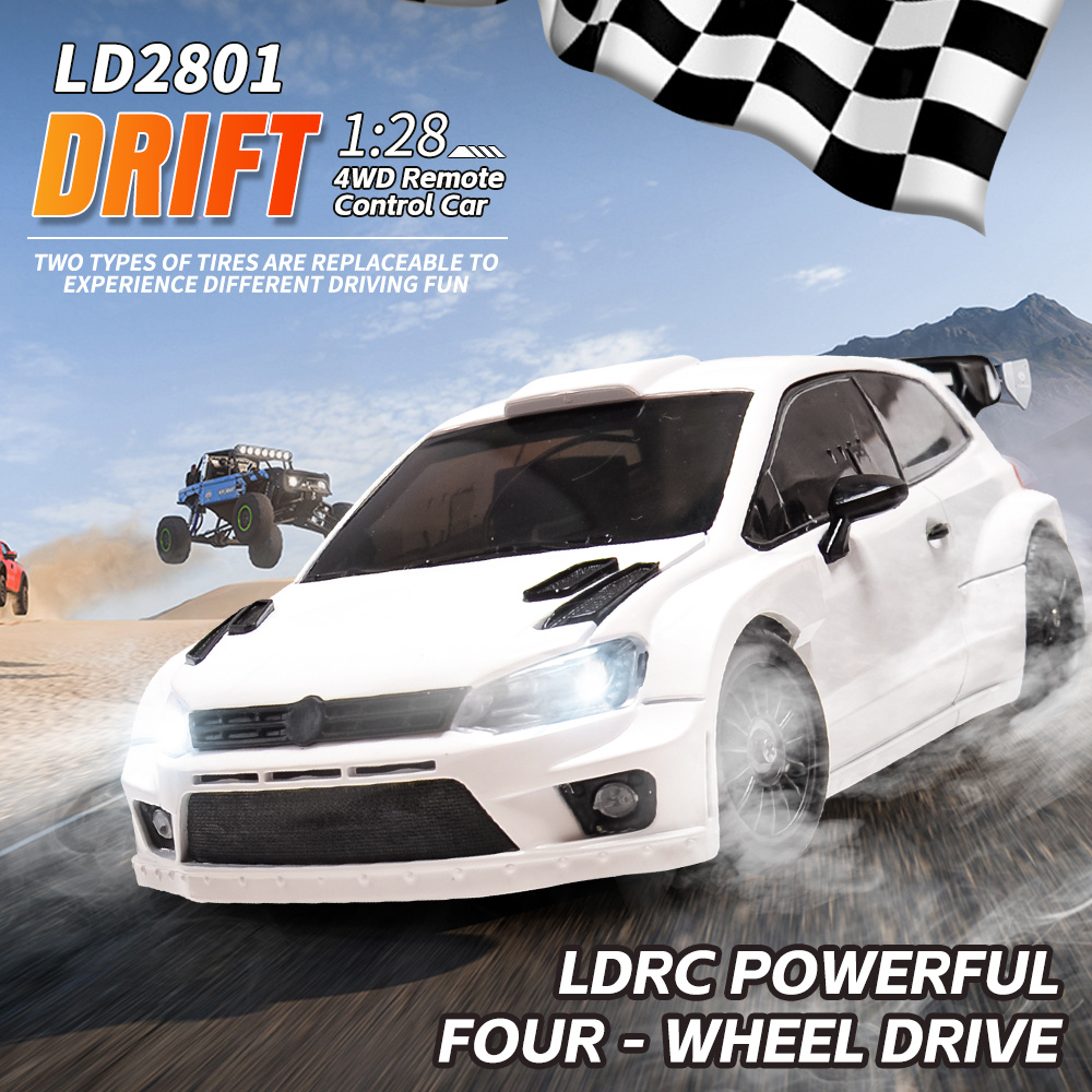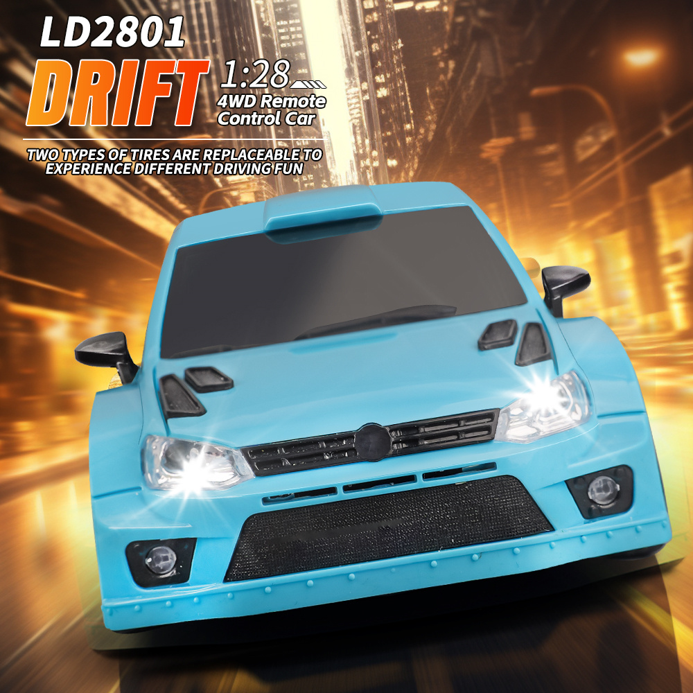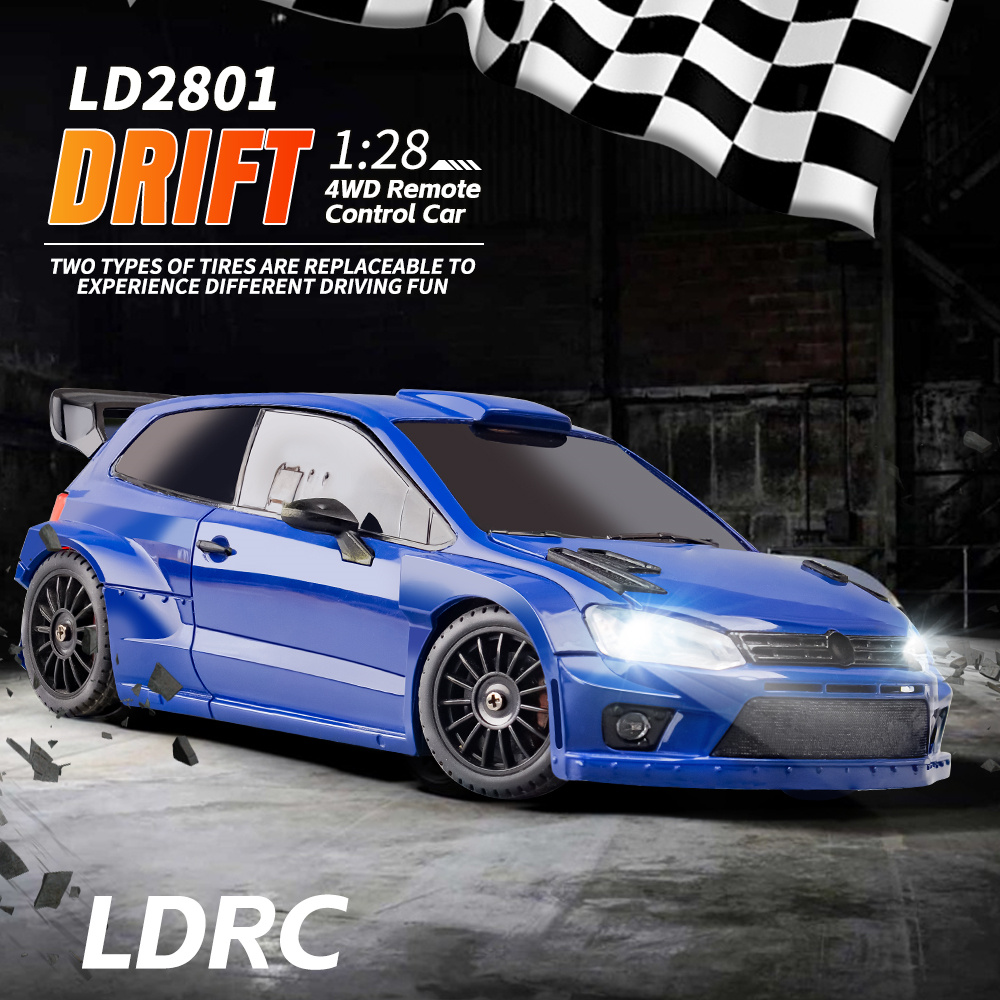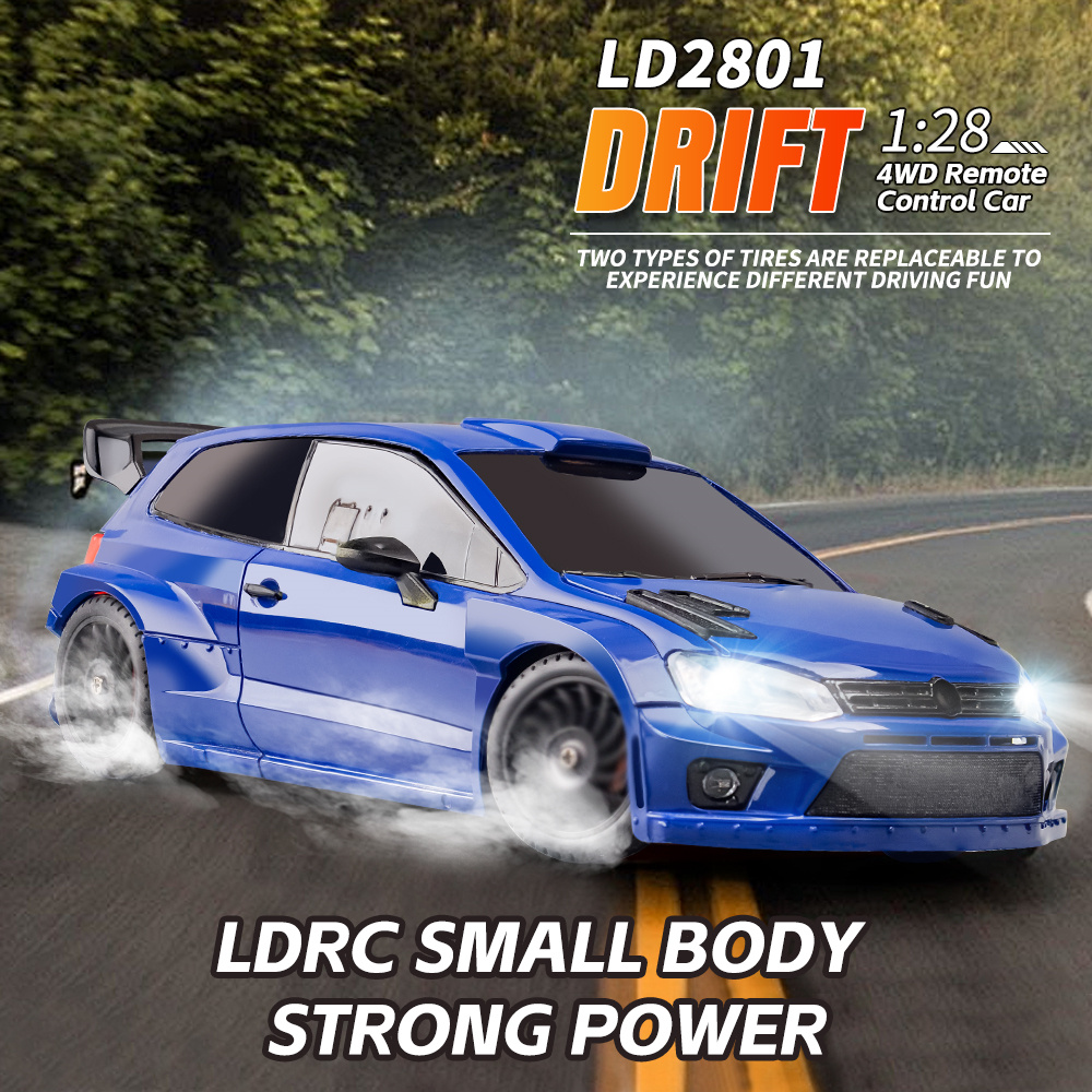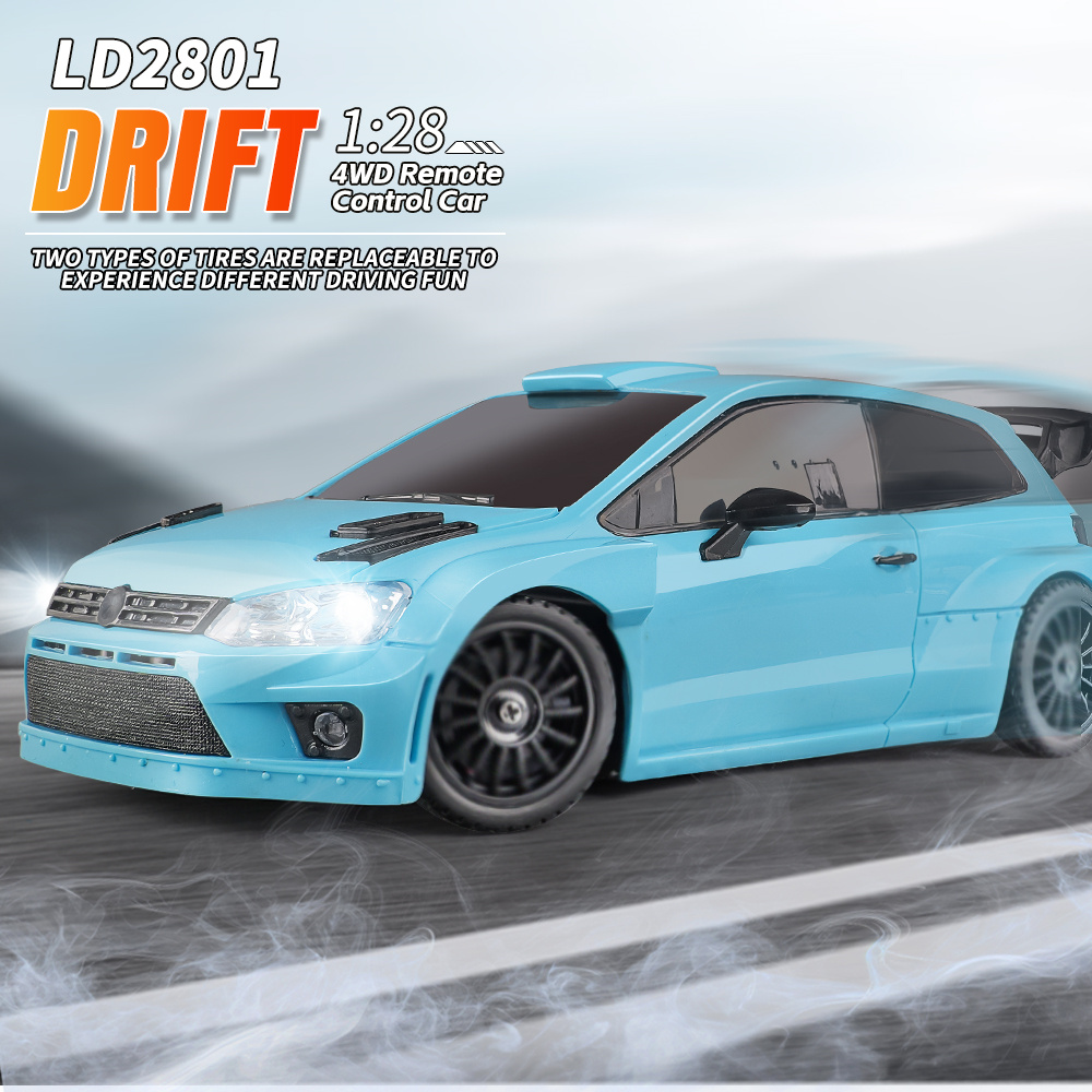 LDRC 2801 1/28-mittakaava valmis driftaava RC-auto 2,4 GHz neliveto LED-valoilla