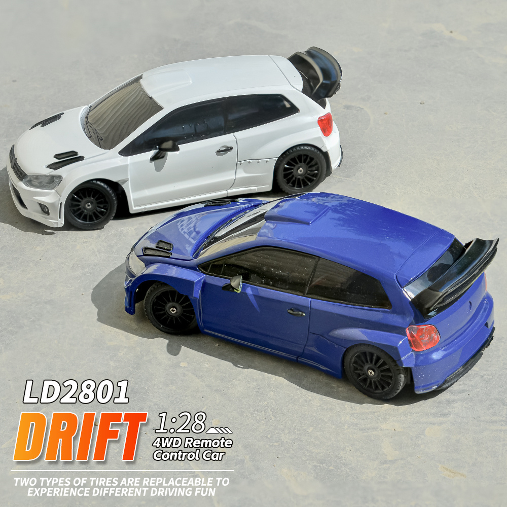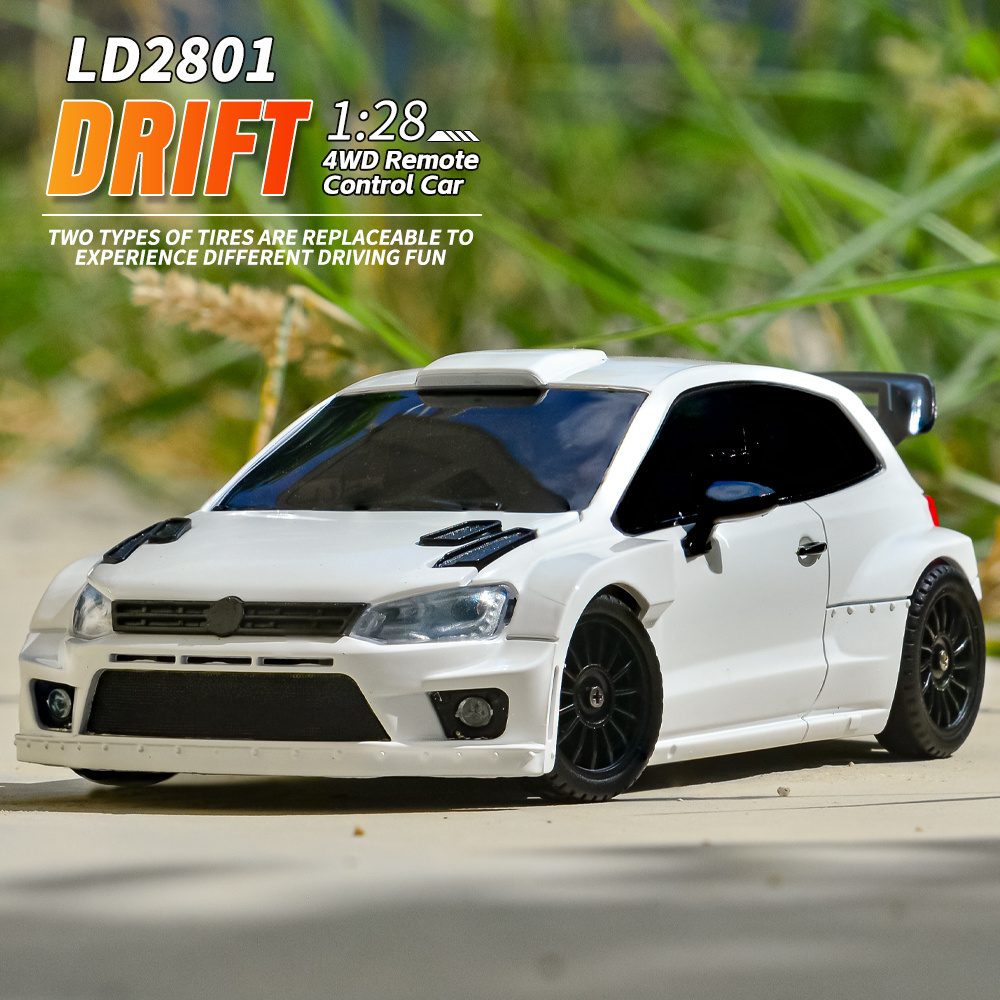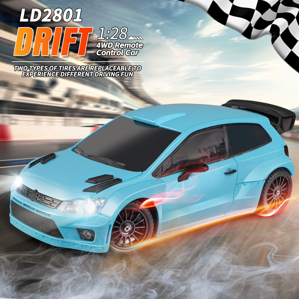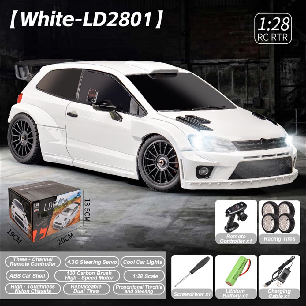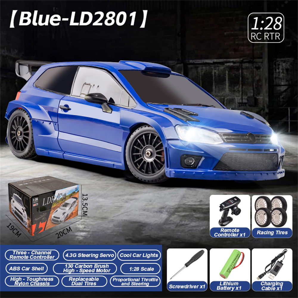 LDRC 2801 1/28-mittakaava valmis driftaava RC-auto 2,4 GHz neliveto LED-valoilla