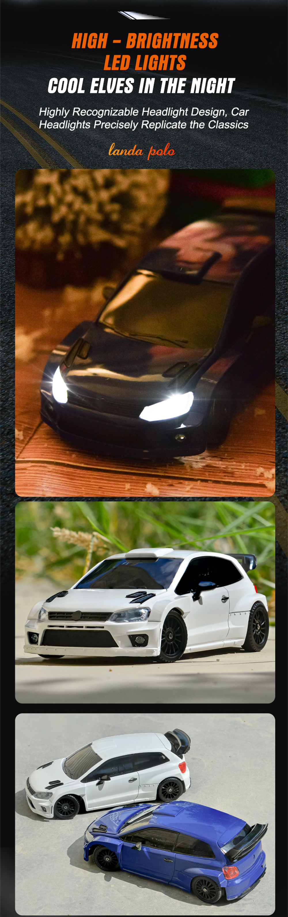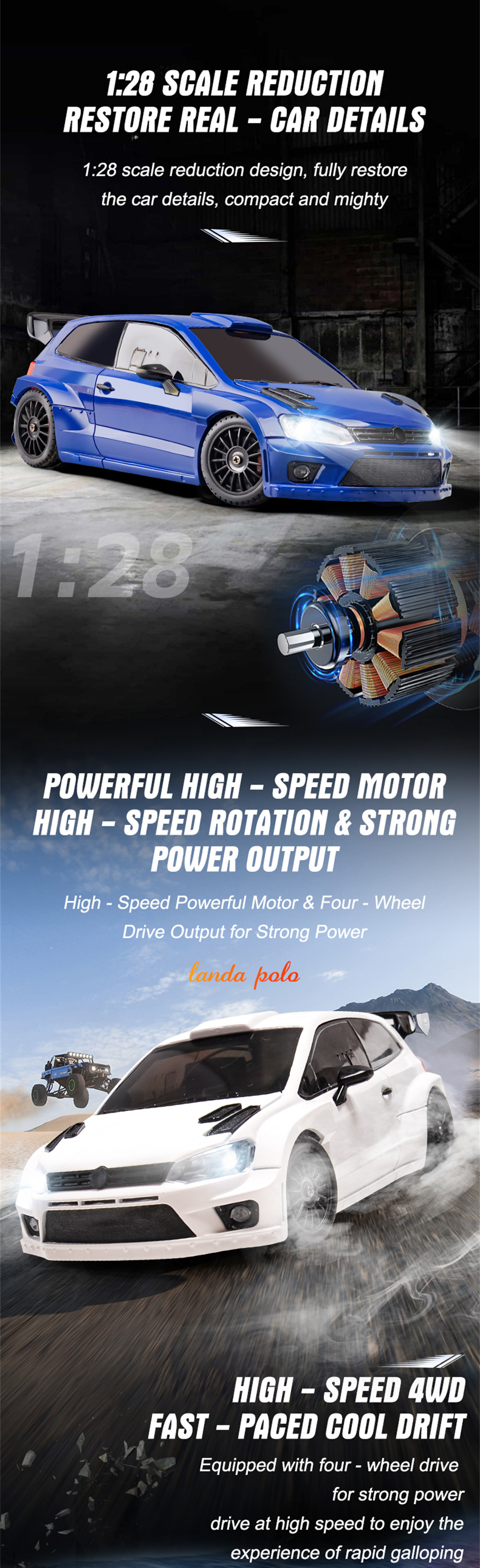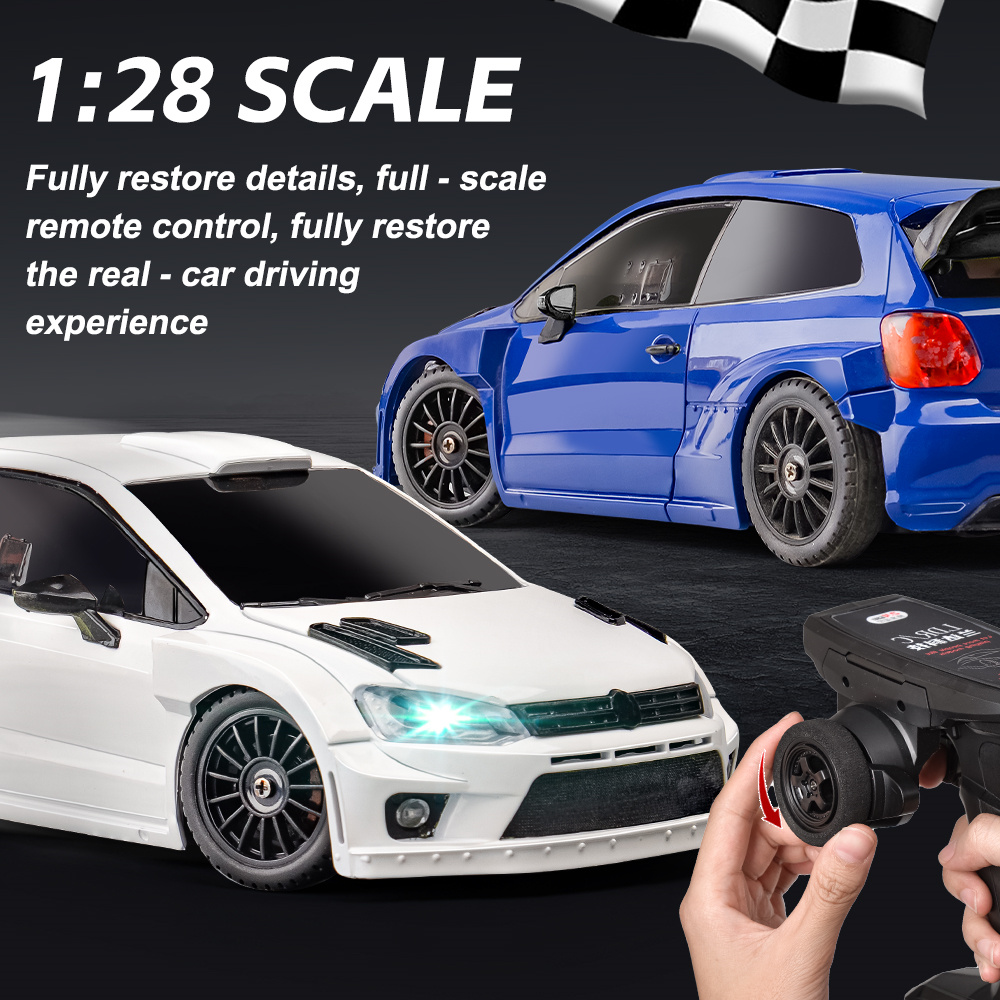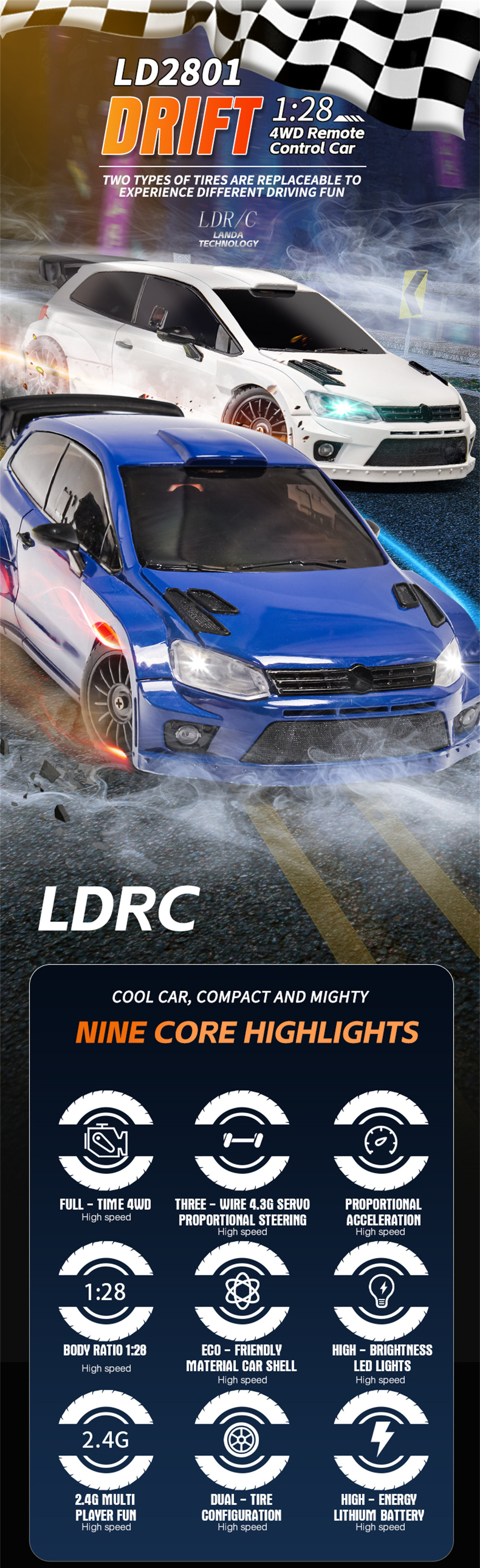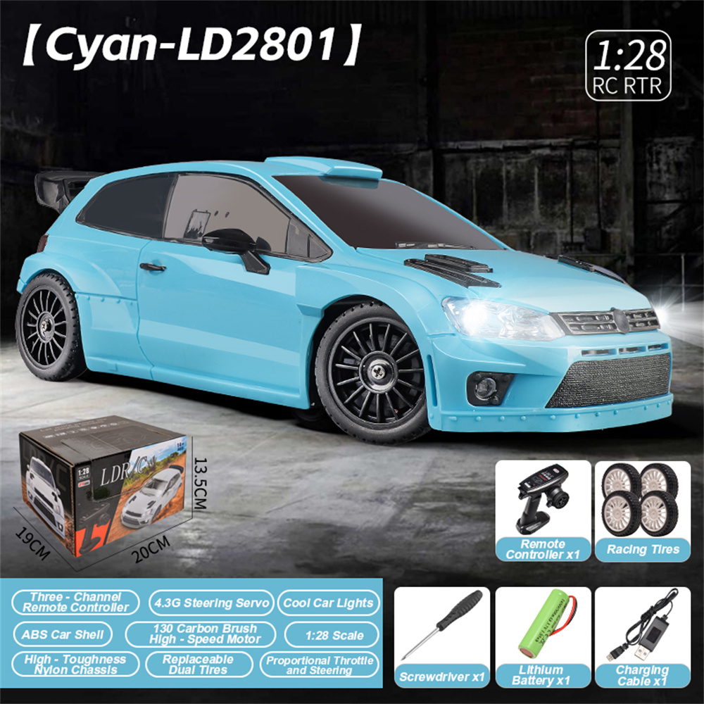 LDRC 2801 1/28-mittakaava valmis driftaava RC-auto 2,4 GHz neliveto LED-valoilla